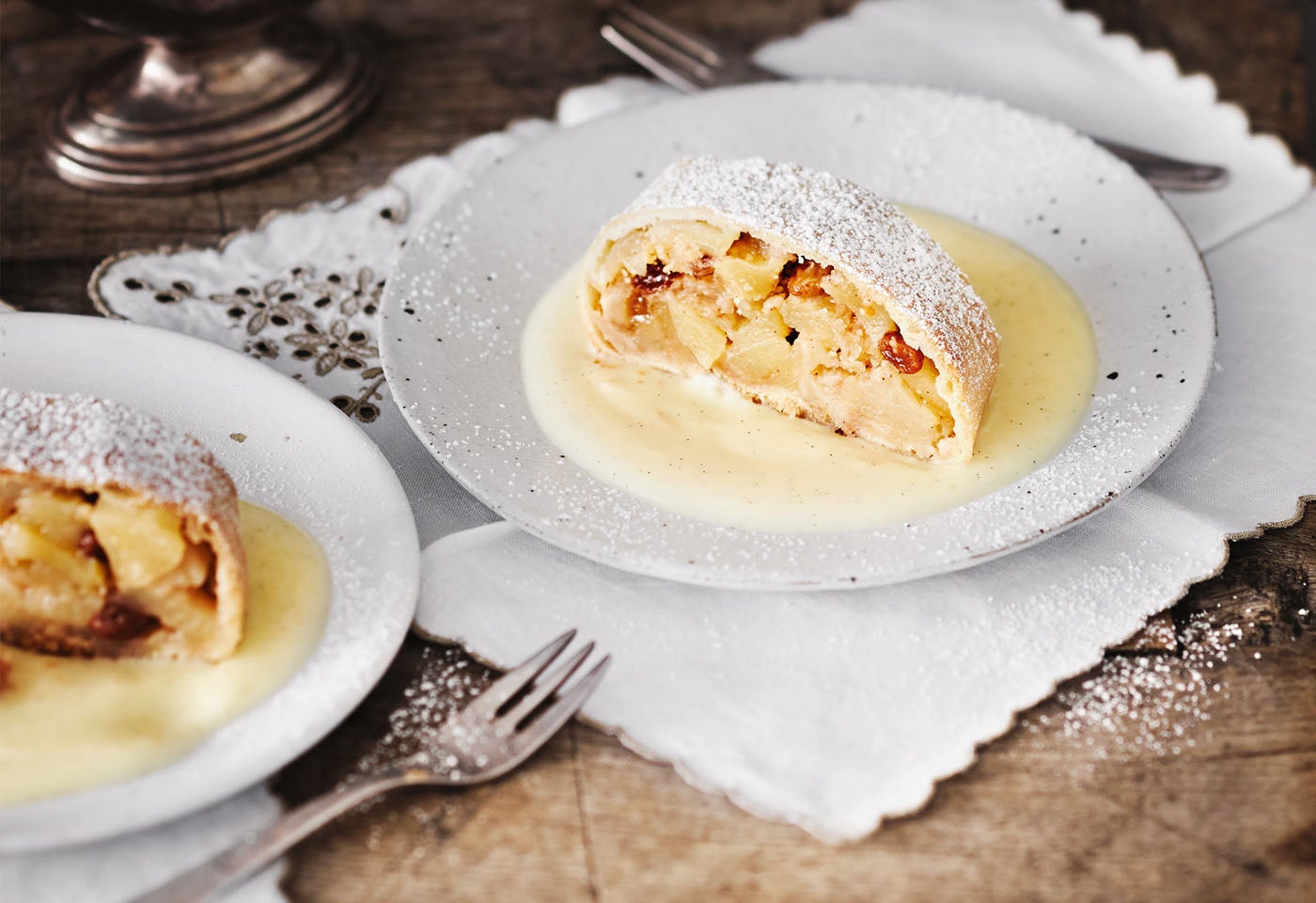 Erdäpfel-Spinat-Strudel mit Kräuterjoghurt