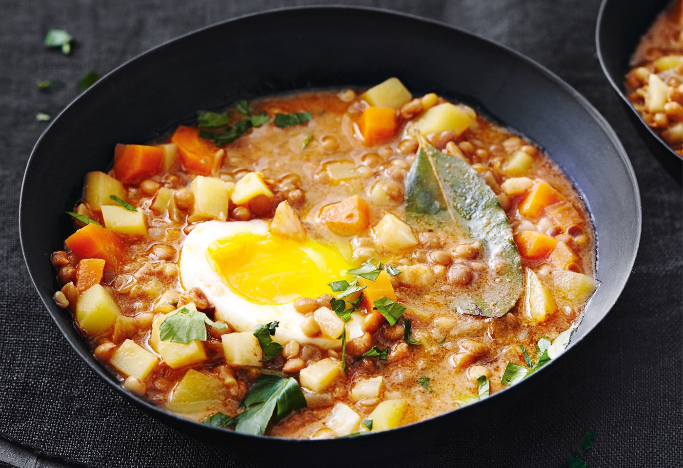Karotten und Kichererbsen mit Zitronen und Kräuterpesto