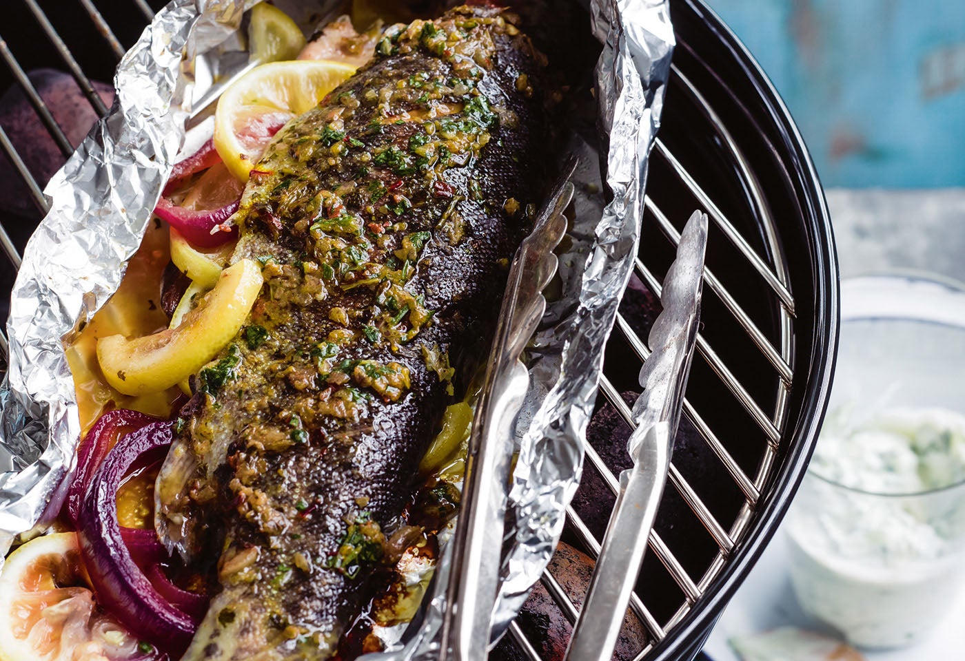 Forelle mit marokkanischen Gewürzen und Minze-Joghurt