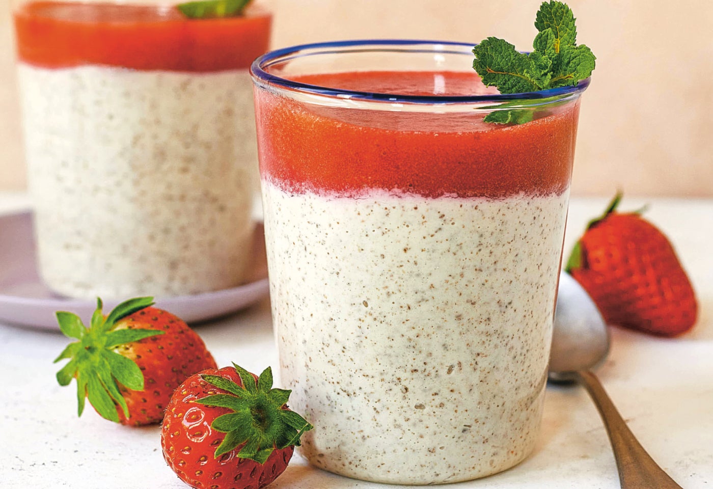 Kokos-Chia-Pudding mit Mango-Gurke-Kräuter-Salat