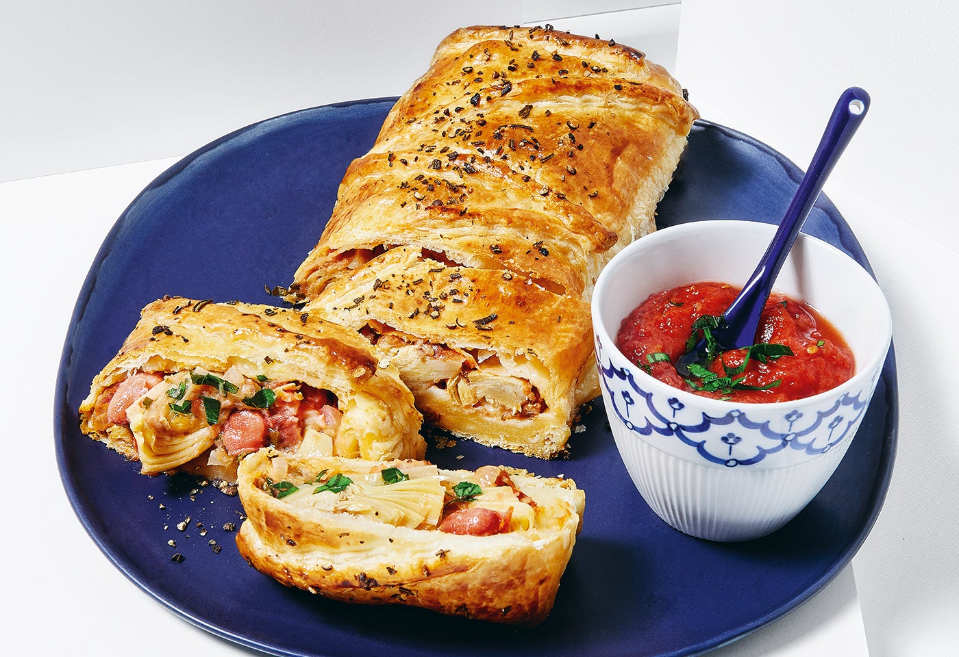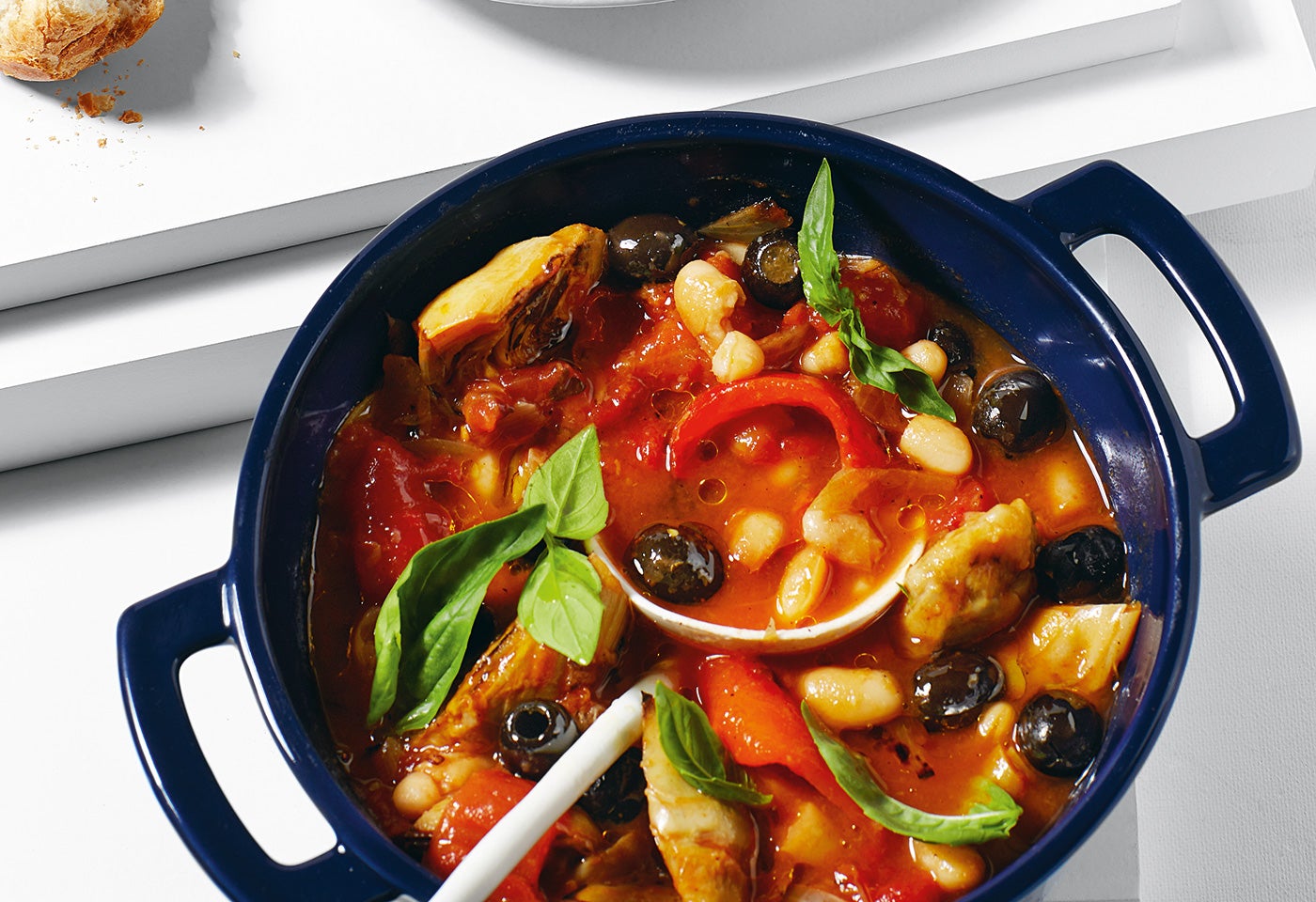 Penne mit Artischocken, Erbsen und grünen Oliven