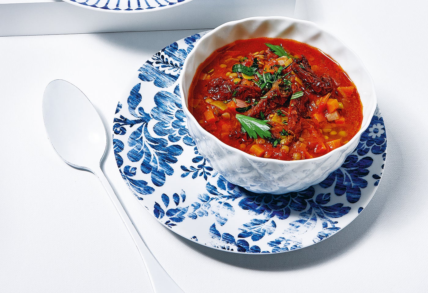 Linsen mit Speck mit Kräuter-Semmelknödeln