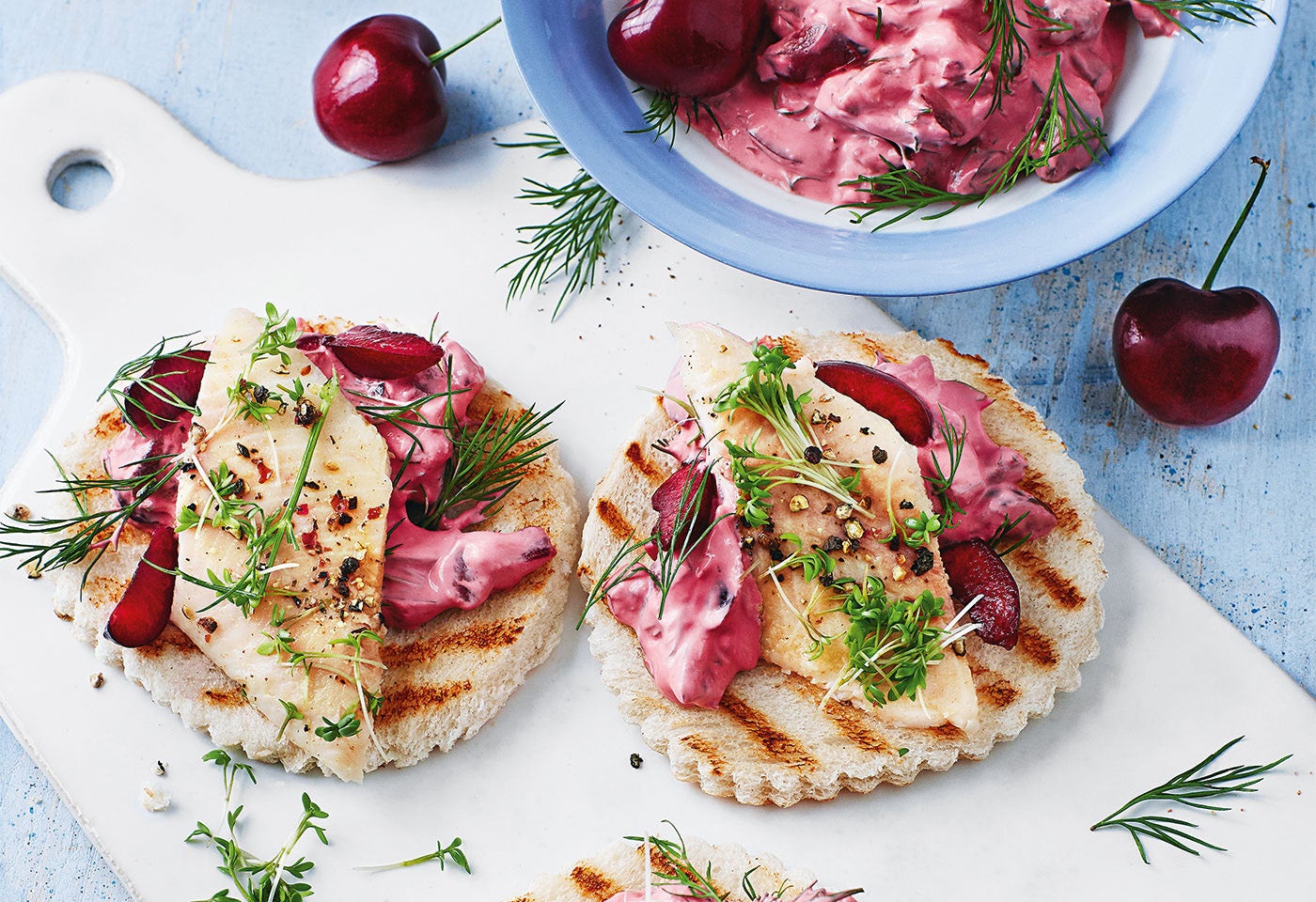 Räucherforelle mit Kirschen-Dille-Rahm auf Toast