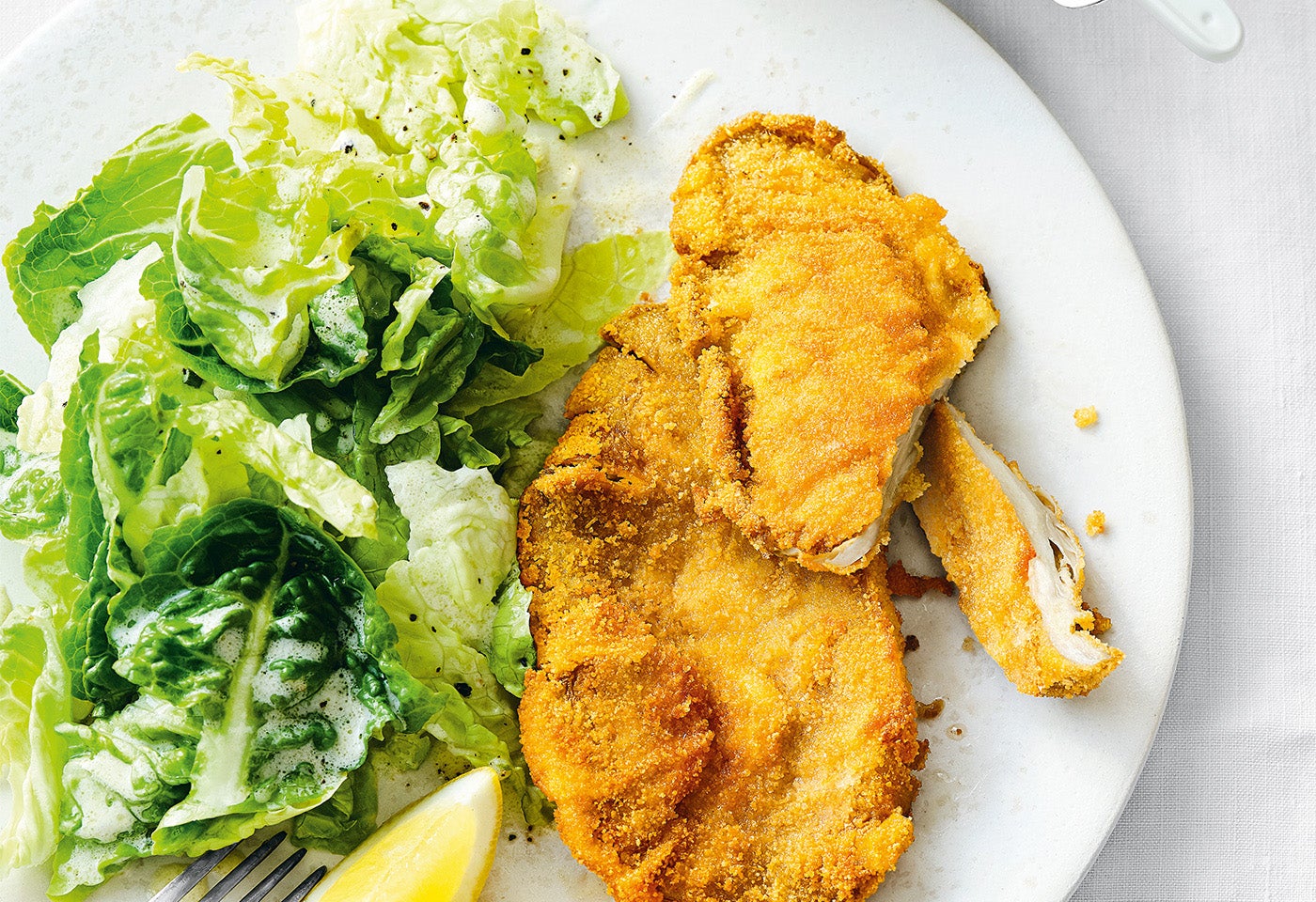 Austernpilzschnitzel mit Sauce Tartare und Blattsalat