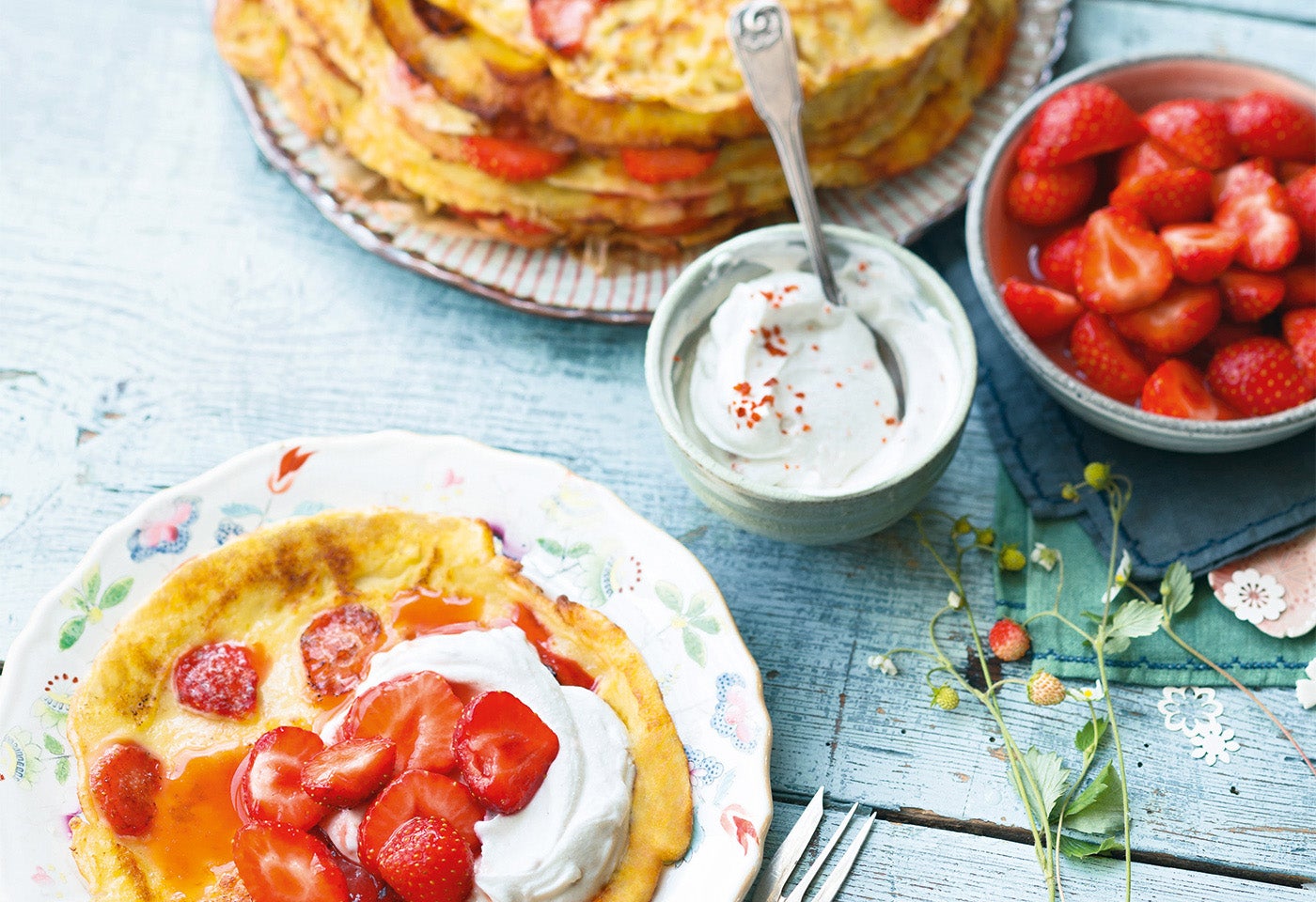 Erdbeer-Ziegenfrischkäse-Palatschinken mit Ziegenkäse-Dip