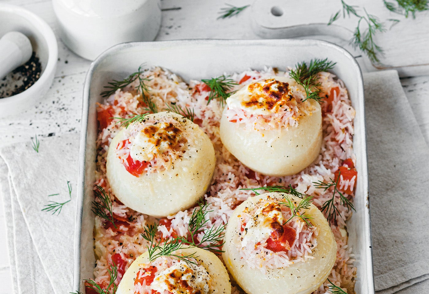 Gefüllte Kohlrabi mit Tomaten-Parmesan-Reis