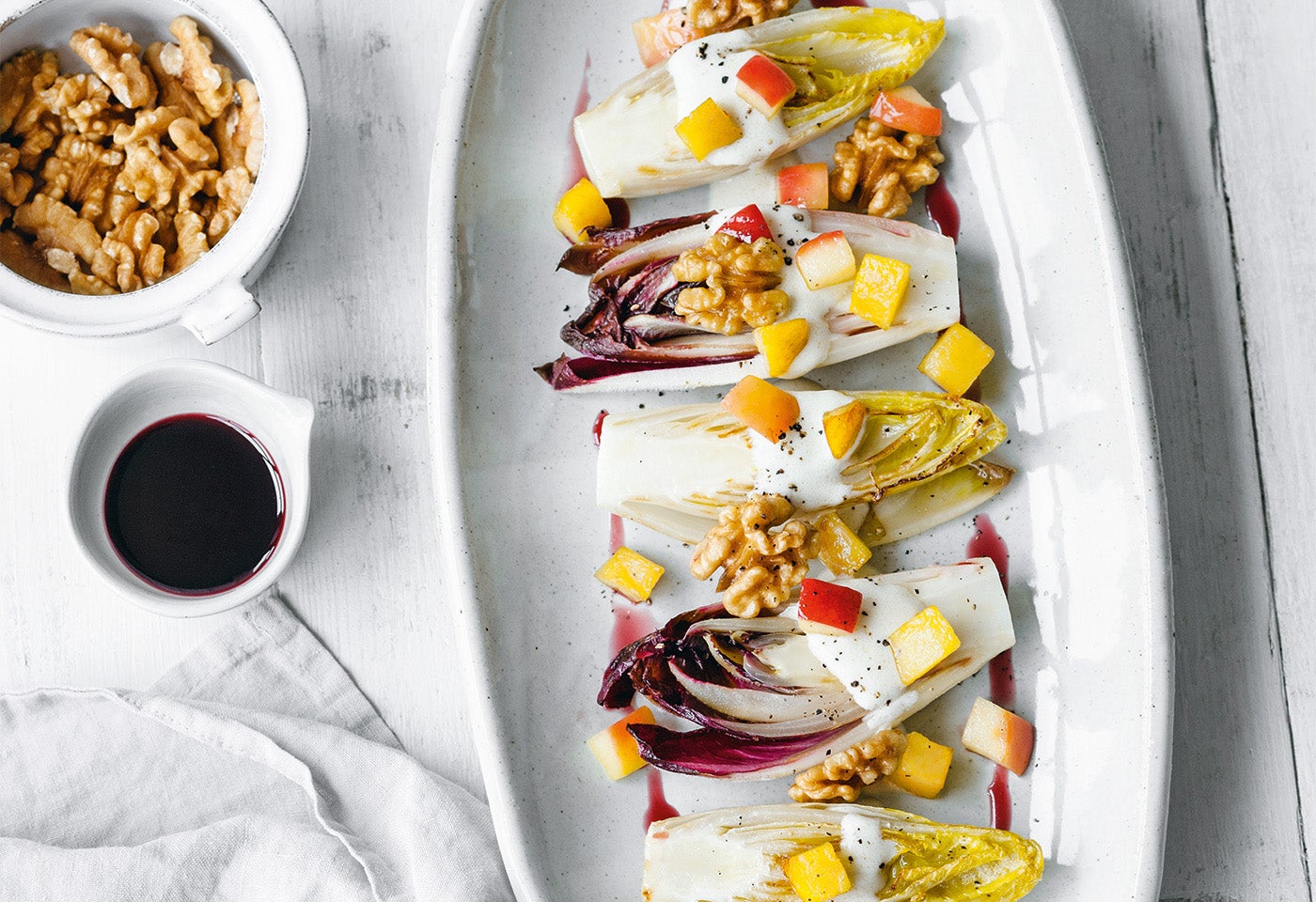Gebratener Chicoree mit Äpfeln, Erdäpfeln und Walnüssen