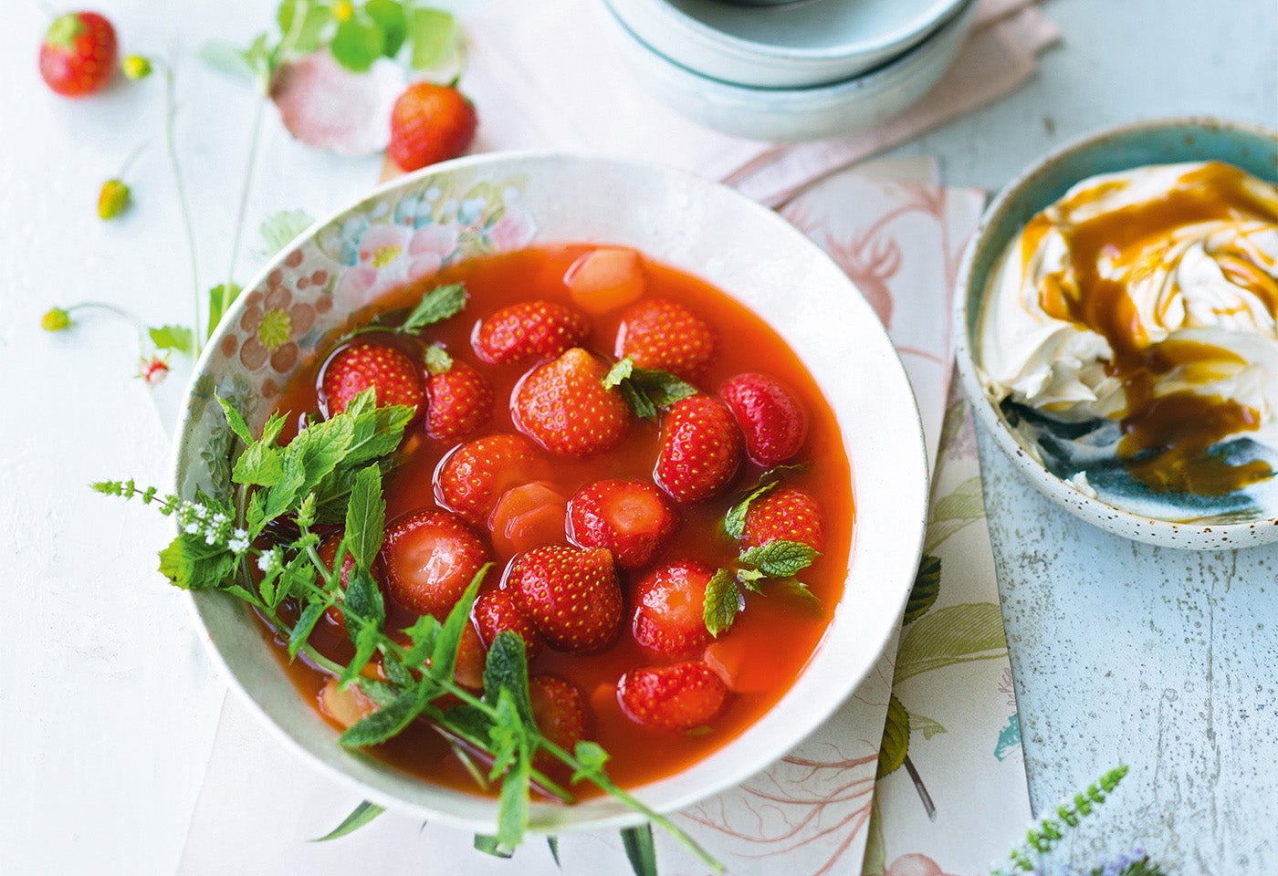 Erdbeerkaltschale mit Karamell-Mascarponecreme