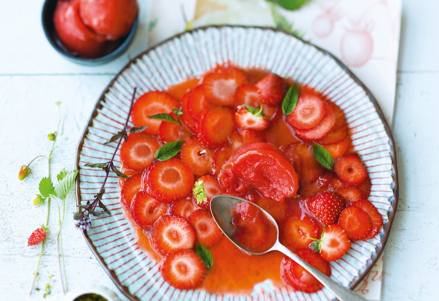 Erdbeer-Carpaccio mit Erdbeersorbet