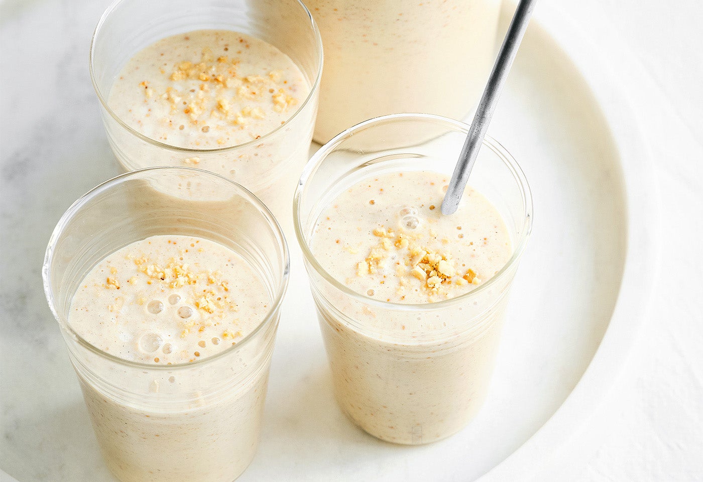 Dattel-Feigen-Milkshake mit gerösteten Mandeln