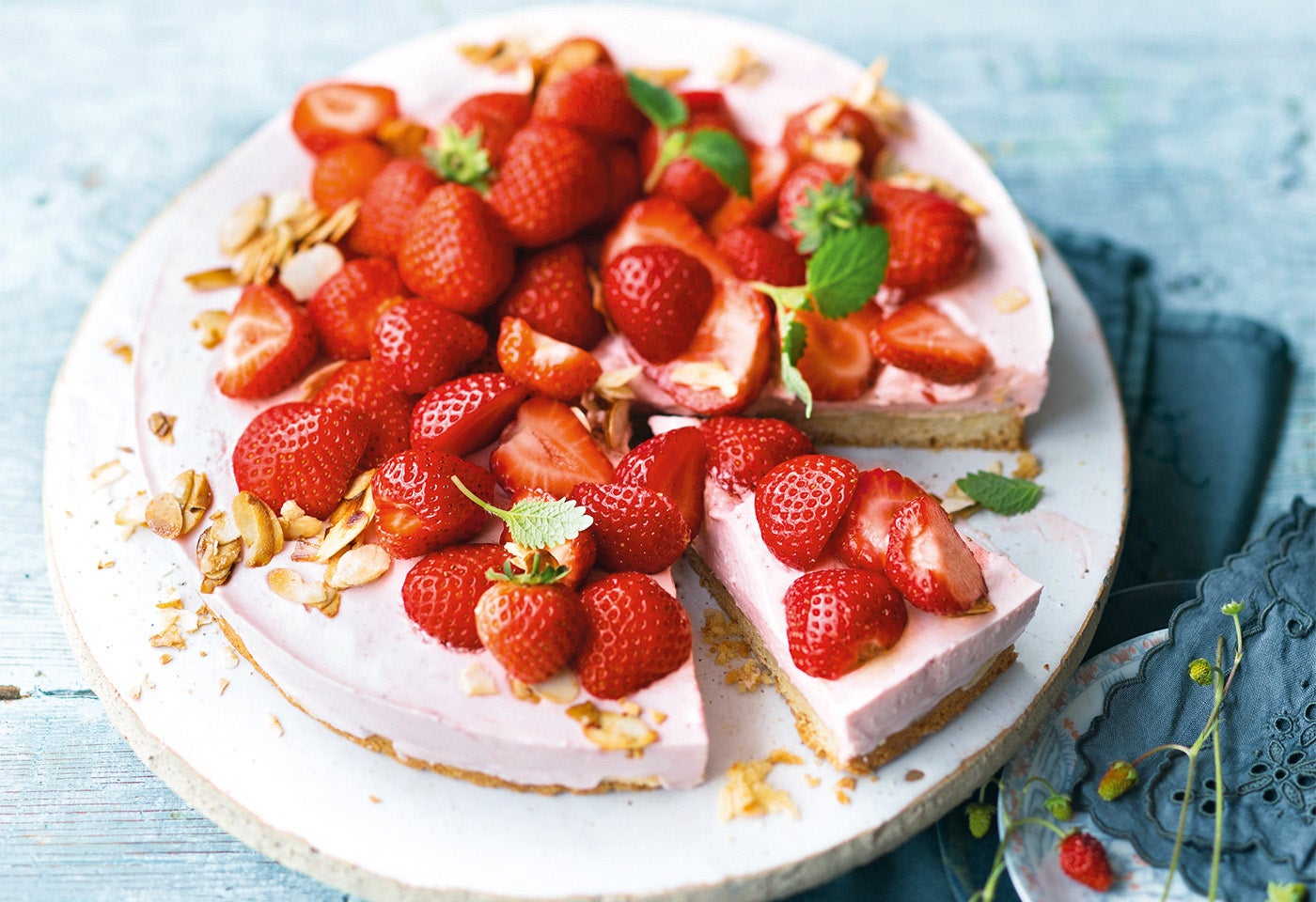Erdbeer-Mandel-Torte mit Joghurtsauce