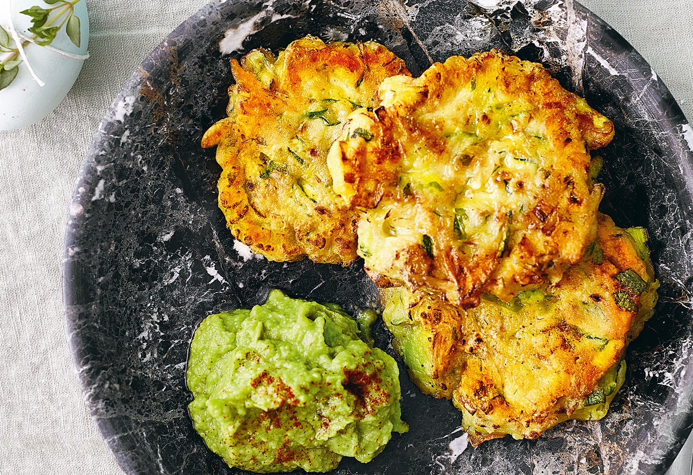 Zucchinilaibchen mit Guacamole und Tomatensalsa