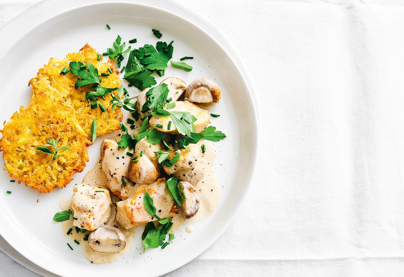 Zürcher Geschnetzeltes vom Huhn mit Ofen-Rösti