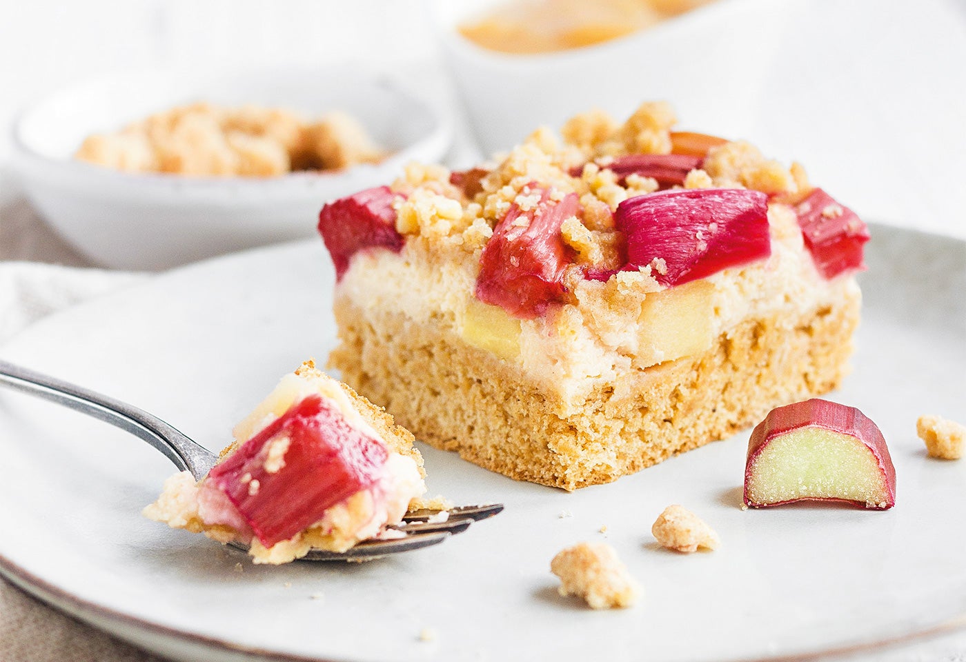 Streuselkuchen mit Rhabarber und Apfel