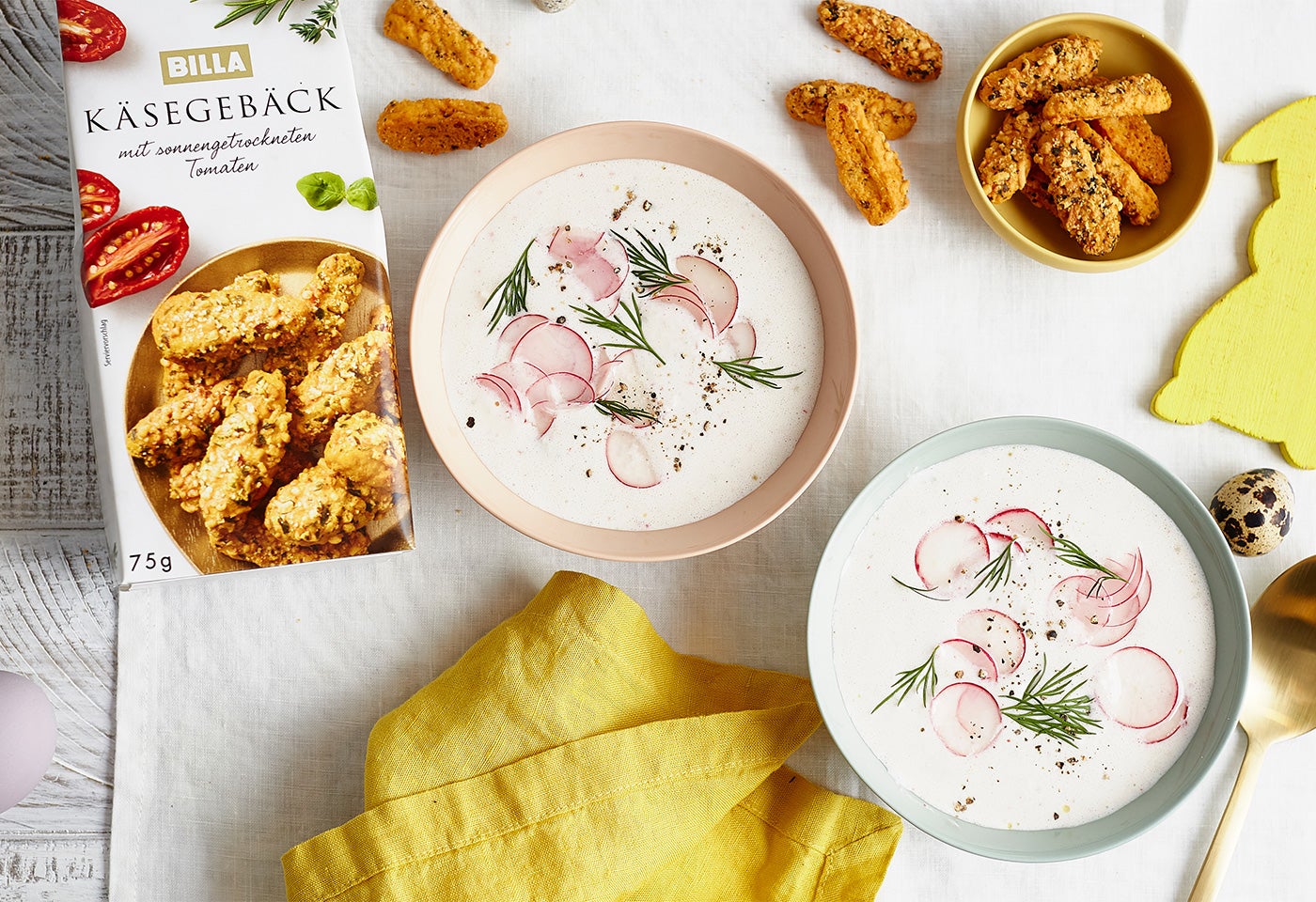 Kalte Radieschensuppe mit Käsegebäck