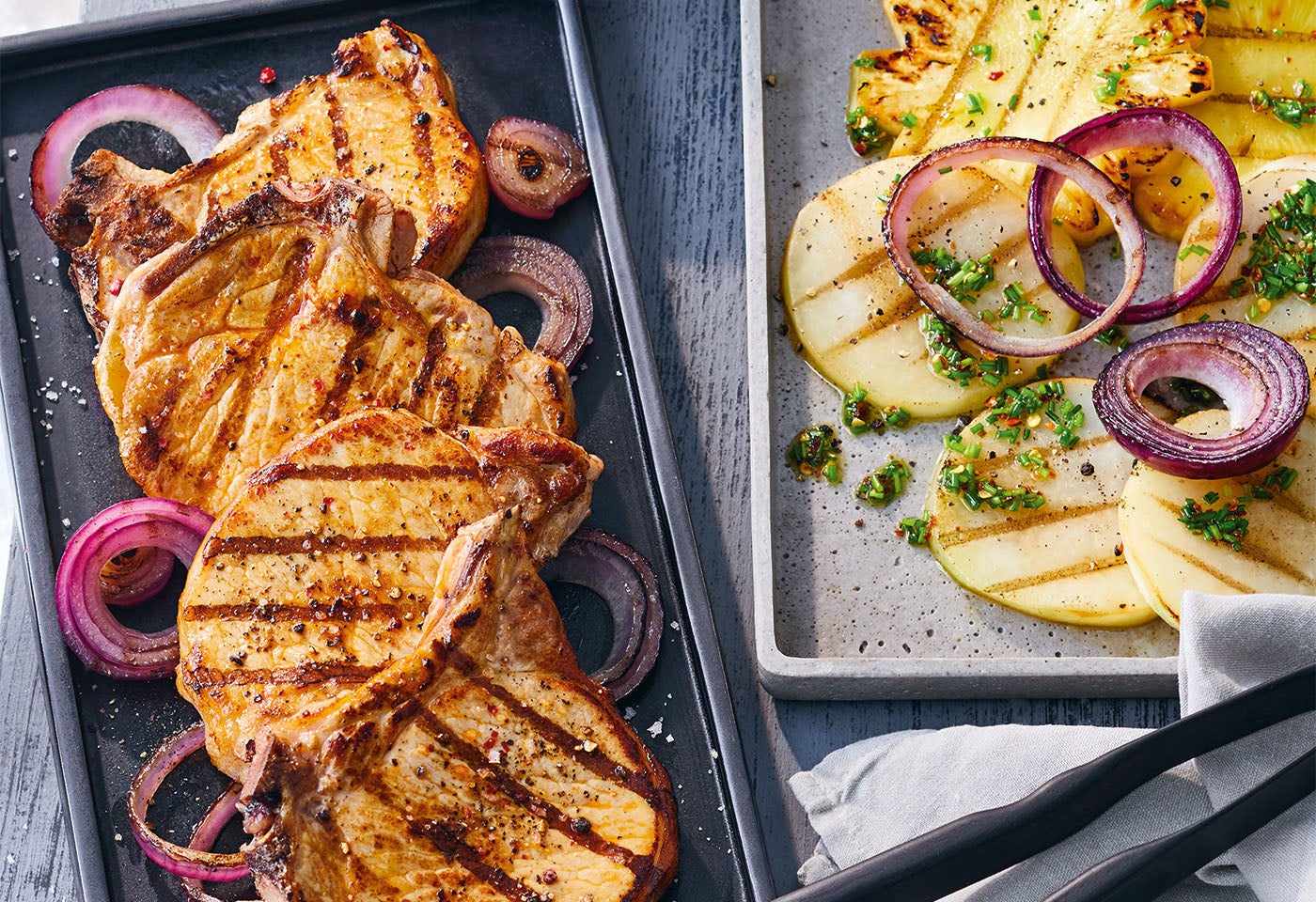 Gegrillte Schweinskotletts mit Kohlrabi und Ananas