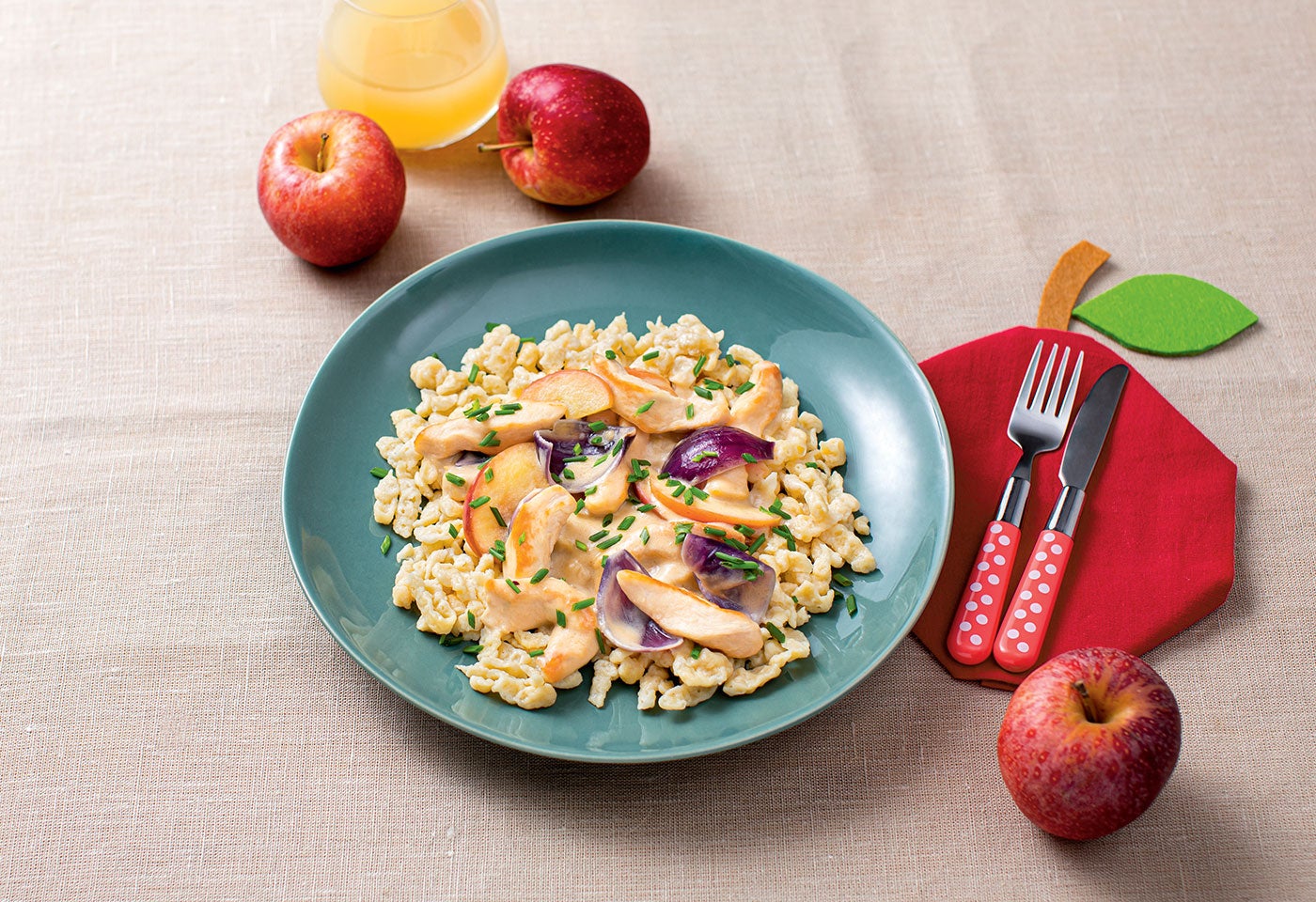 Bio-Hühner-Geschnezeltes mit Äpfeln und Spätzle