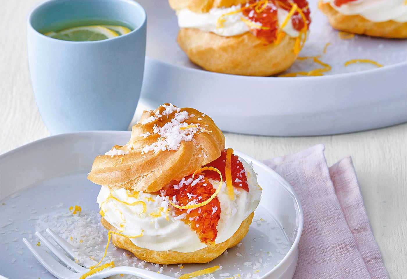 Profiteroles mit Zitronen-Creme und Zitrusfrüchte-Filets