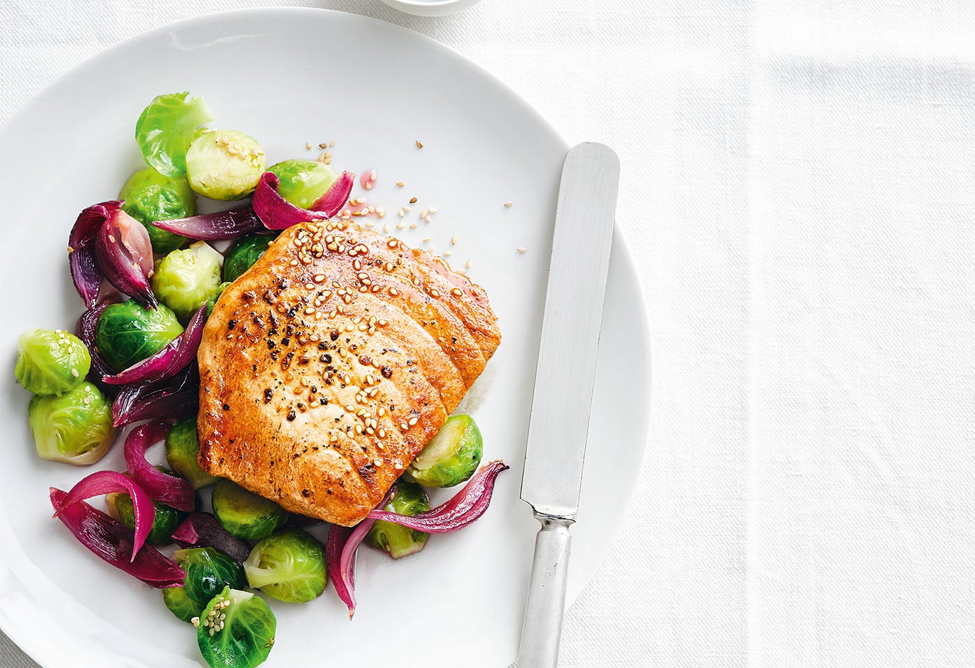 Thunfischsteak mit Kohlsprossen und karamellisierten Zwiebeln