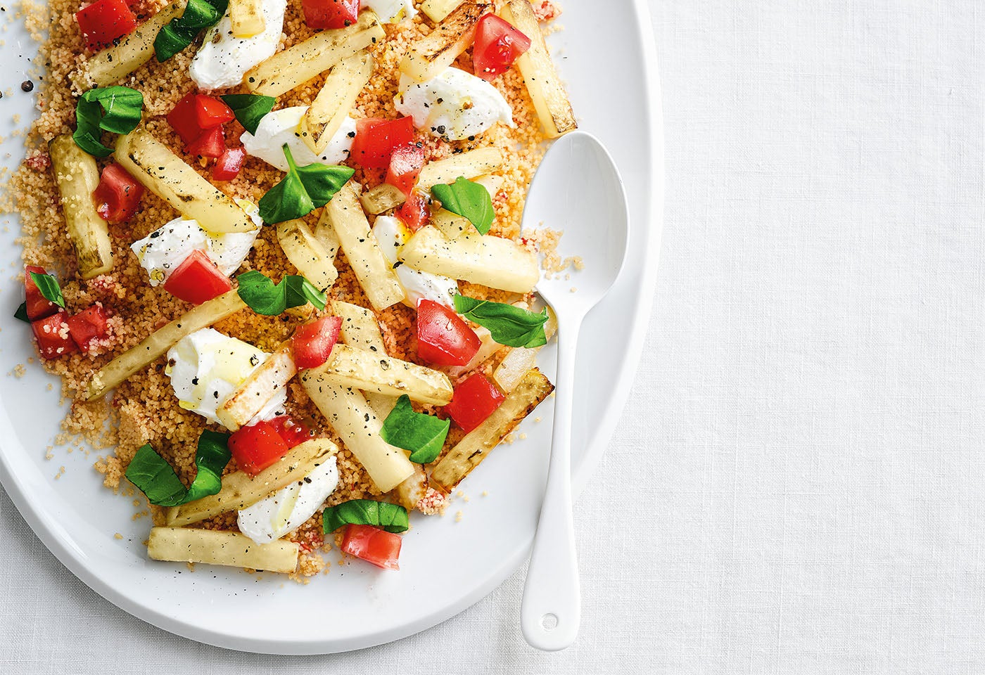 Tomatencouscous mit gebratenem Kohlrabi und Frischkäse