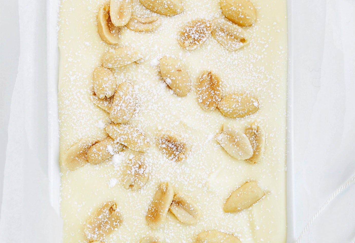 Weißer Schoko-Kokos-Pudding mit Erdnüssen