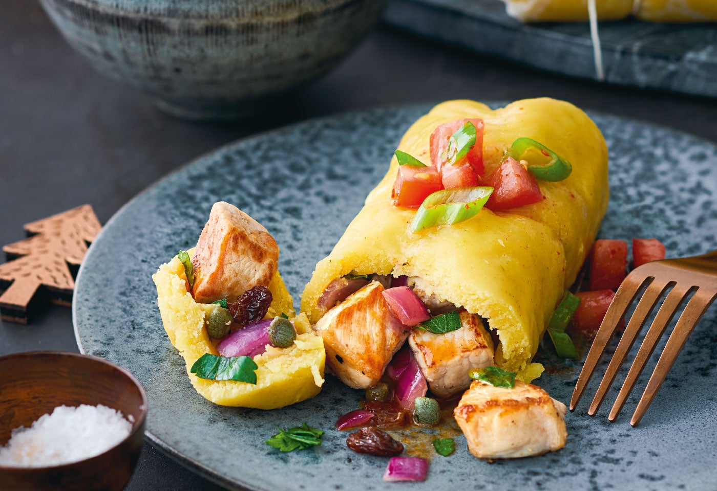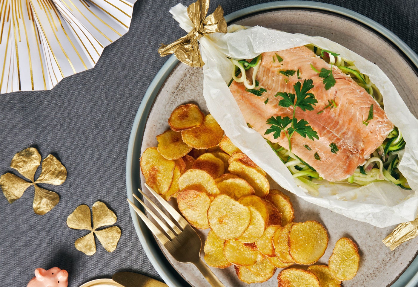 Wildlachsfilet auf Zoodles im Päckchen mit Kartoffelchips