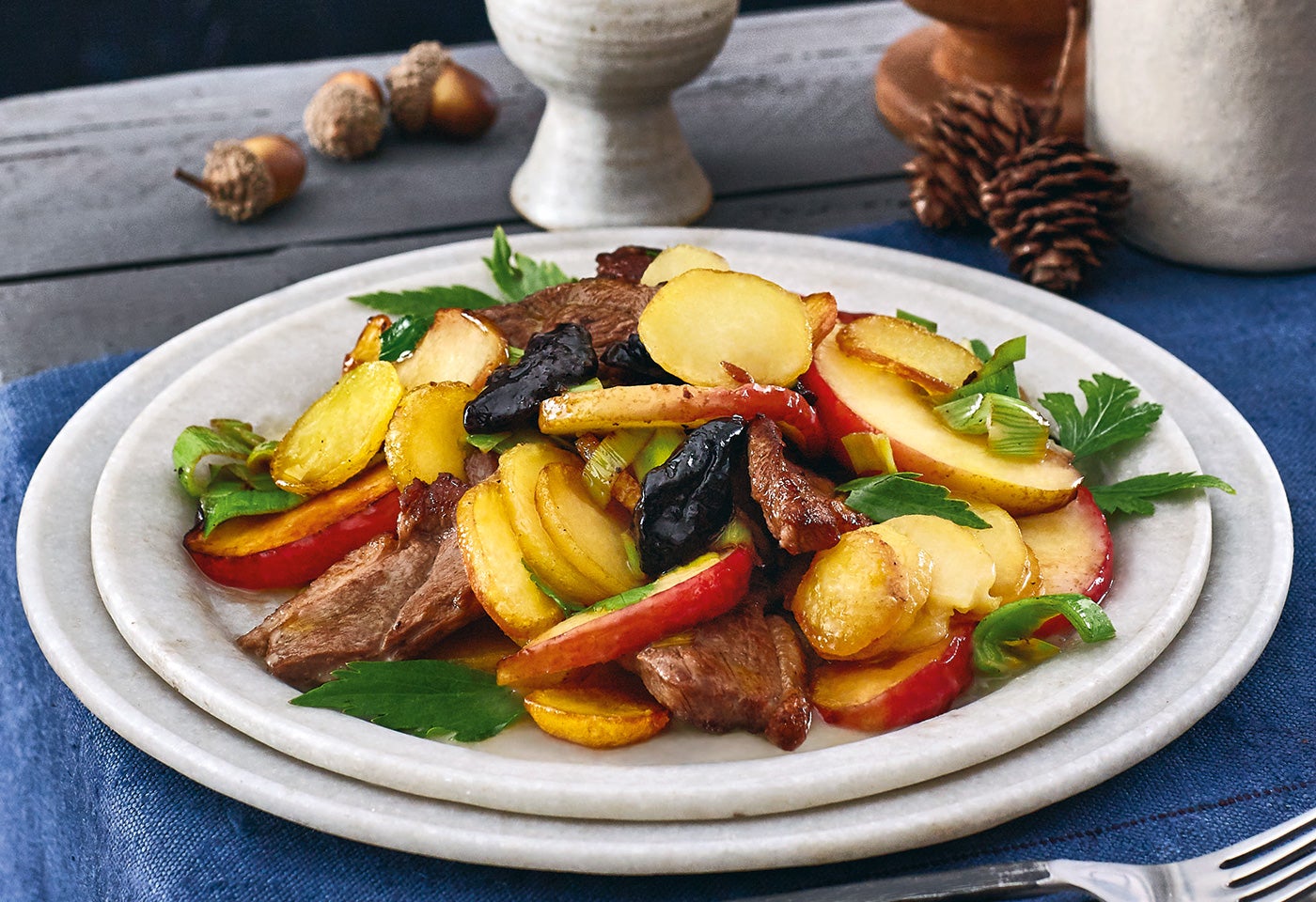 Gänsebrust-Apfel-Gröstl mit Trockenpflaumen