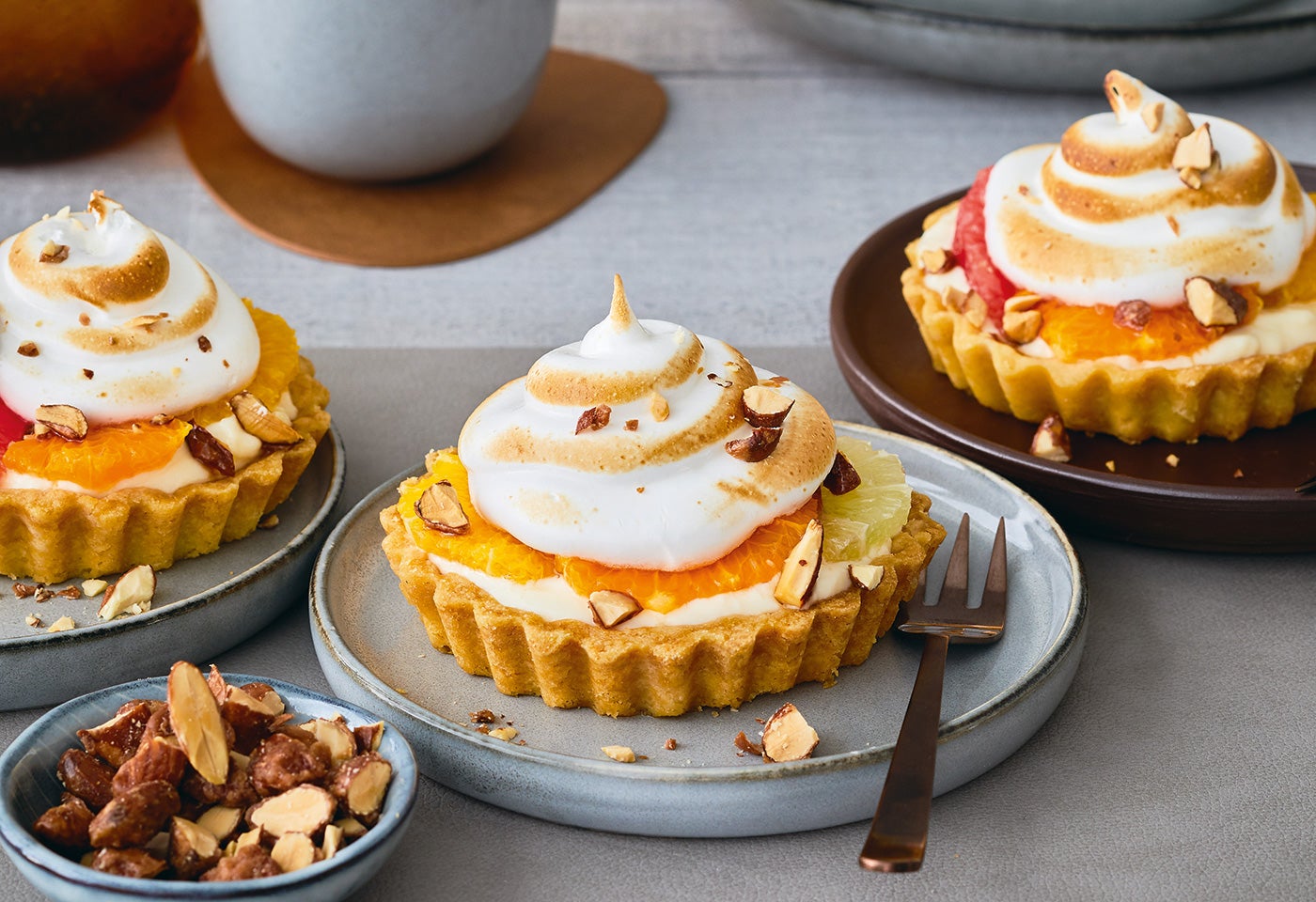 Bretonische Vanilleküchlein mit Zitrusfrüchten und Baiser
