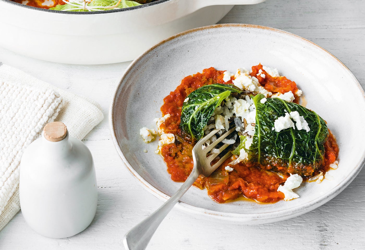 Lauch im Backteig und Ofenkürbis mit Ribiselvinaigrette