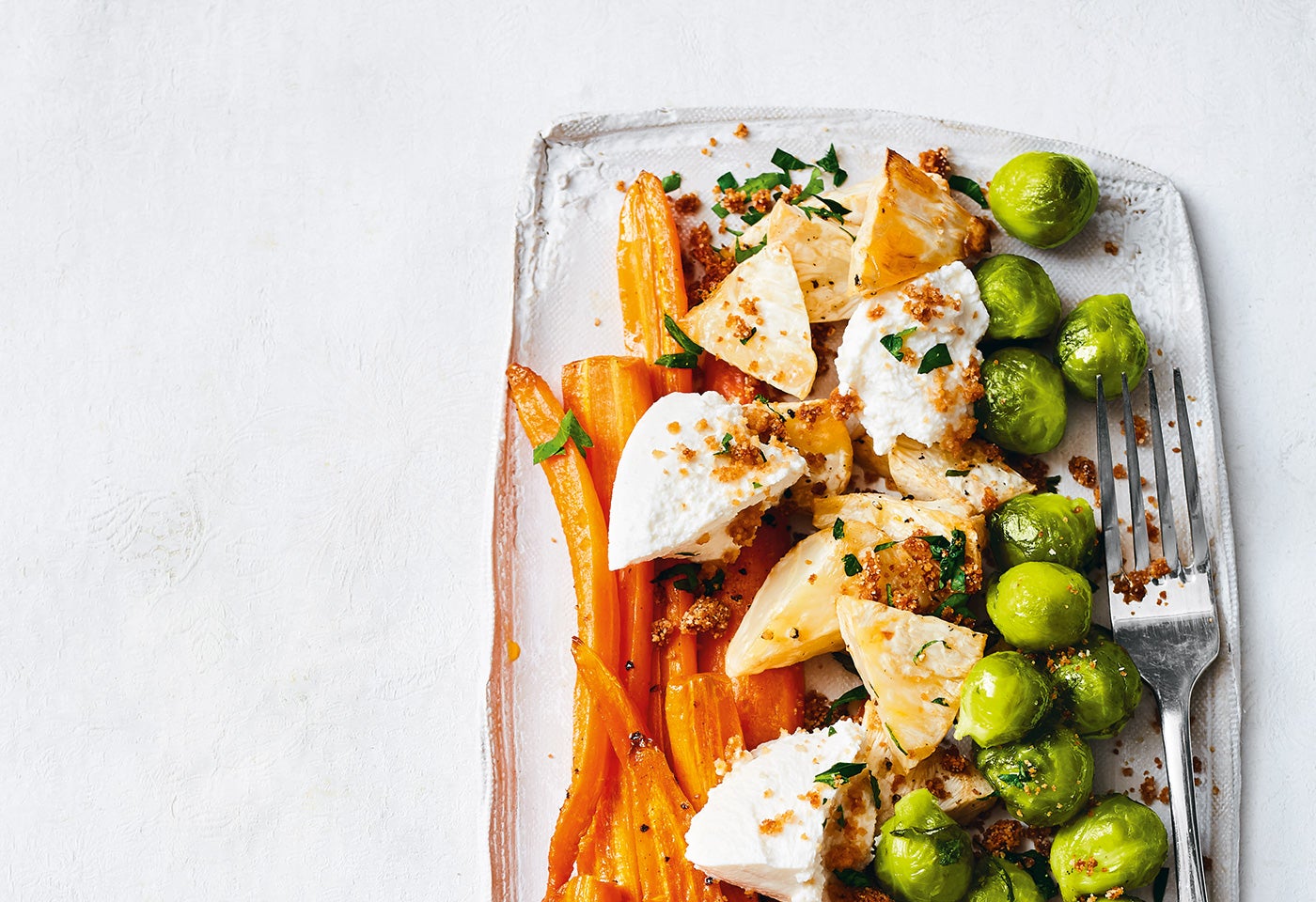 Ofengemüse mit Ricotta und Sojasauce-Bröseln