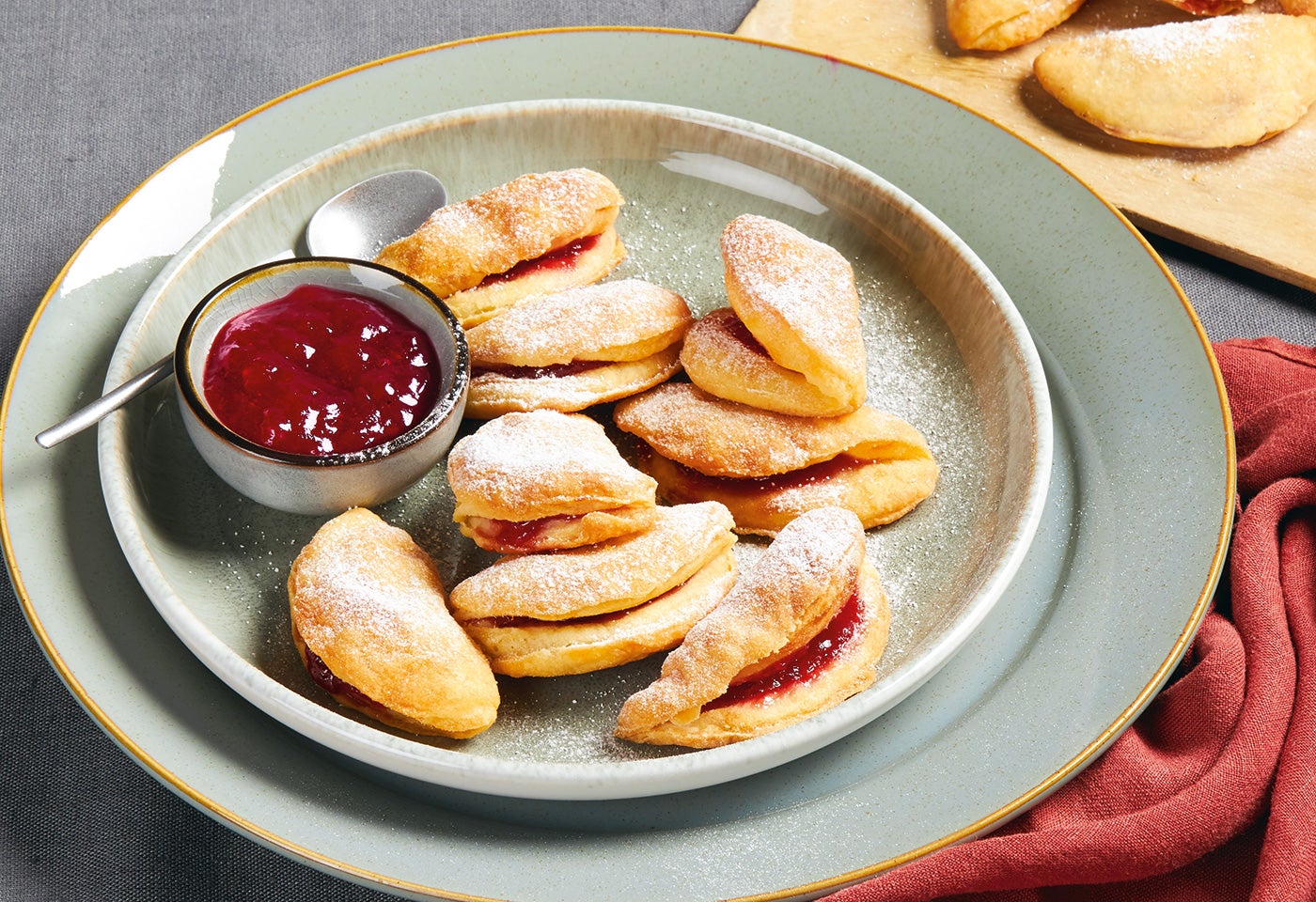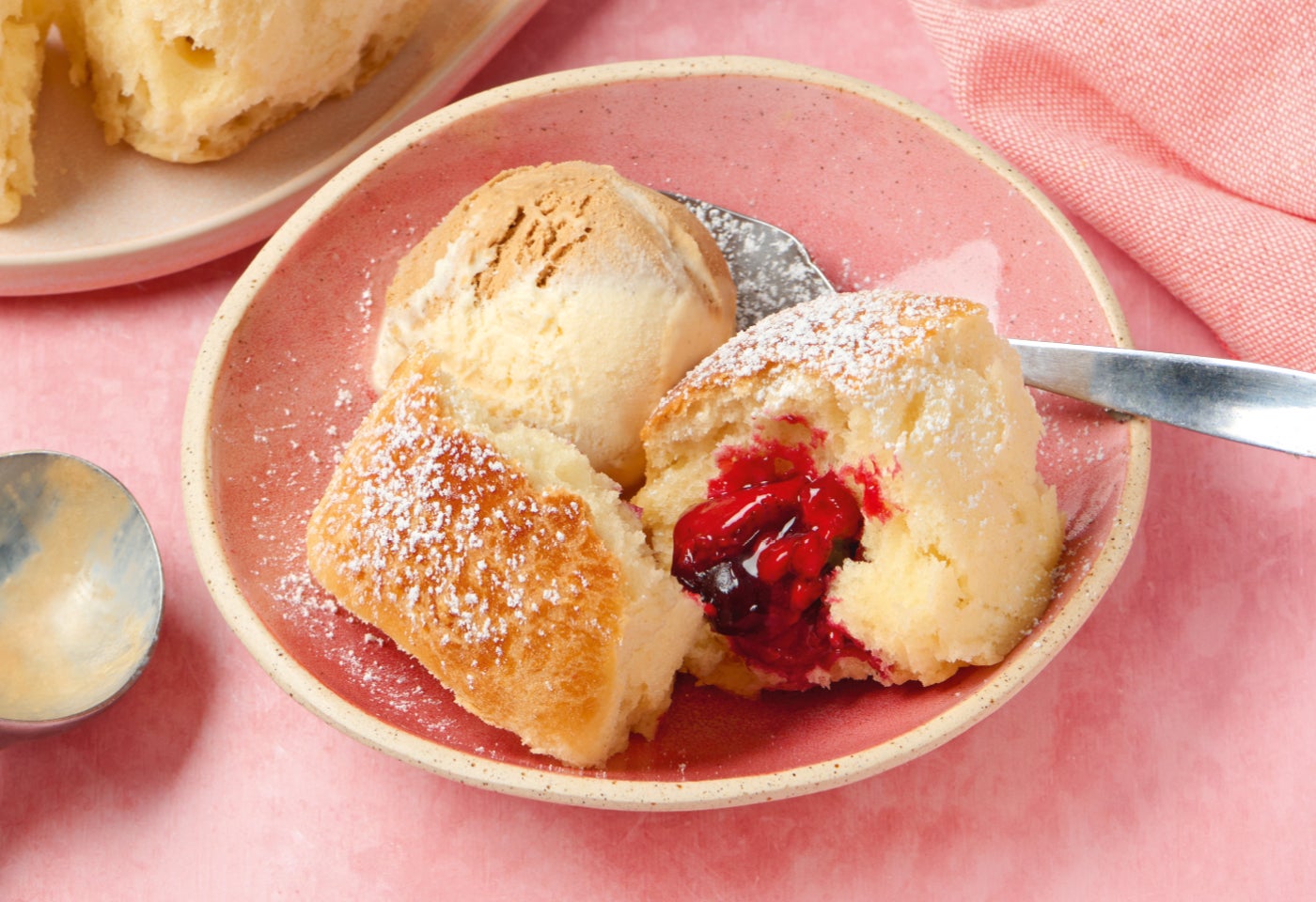 Beerenbuchteln mit Kaffee-Vanille-Eis
