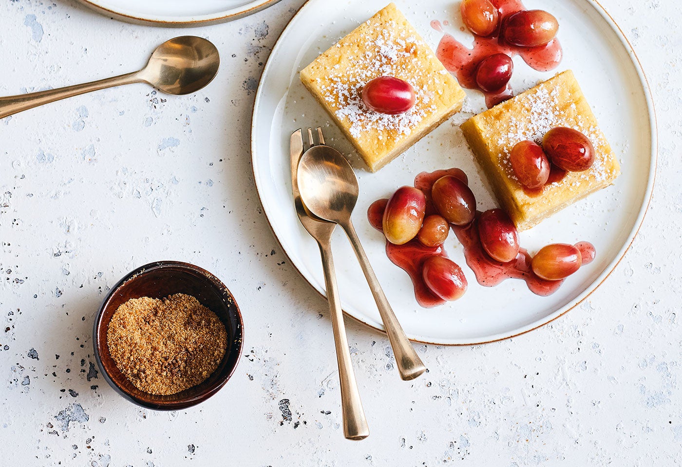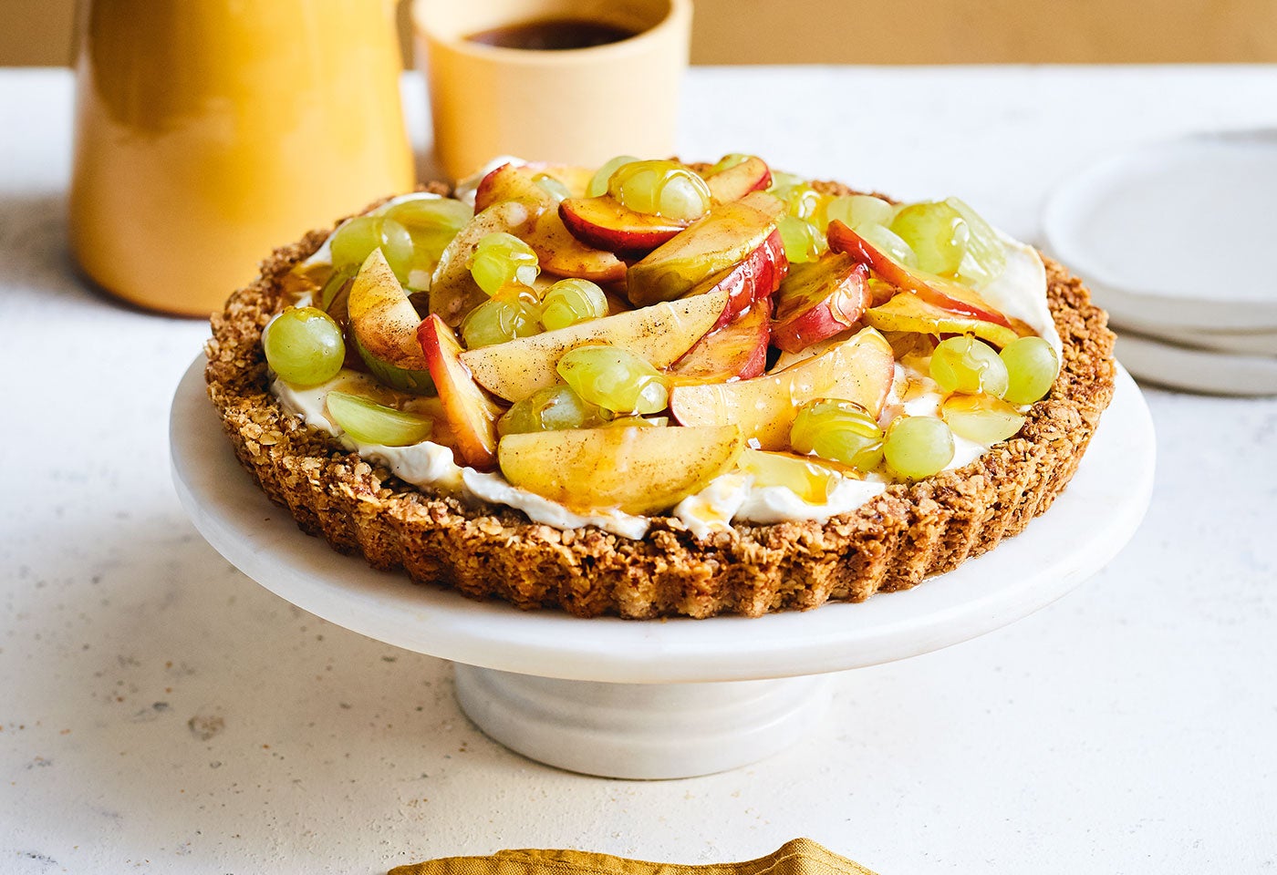 Bircher-Tarte mit Herbstobst und veganem Vanille-Labneh
