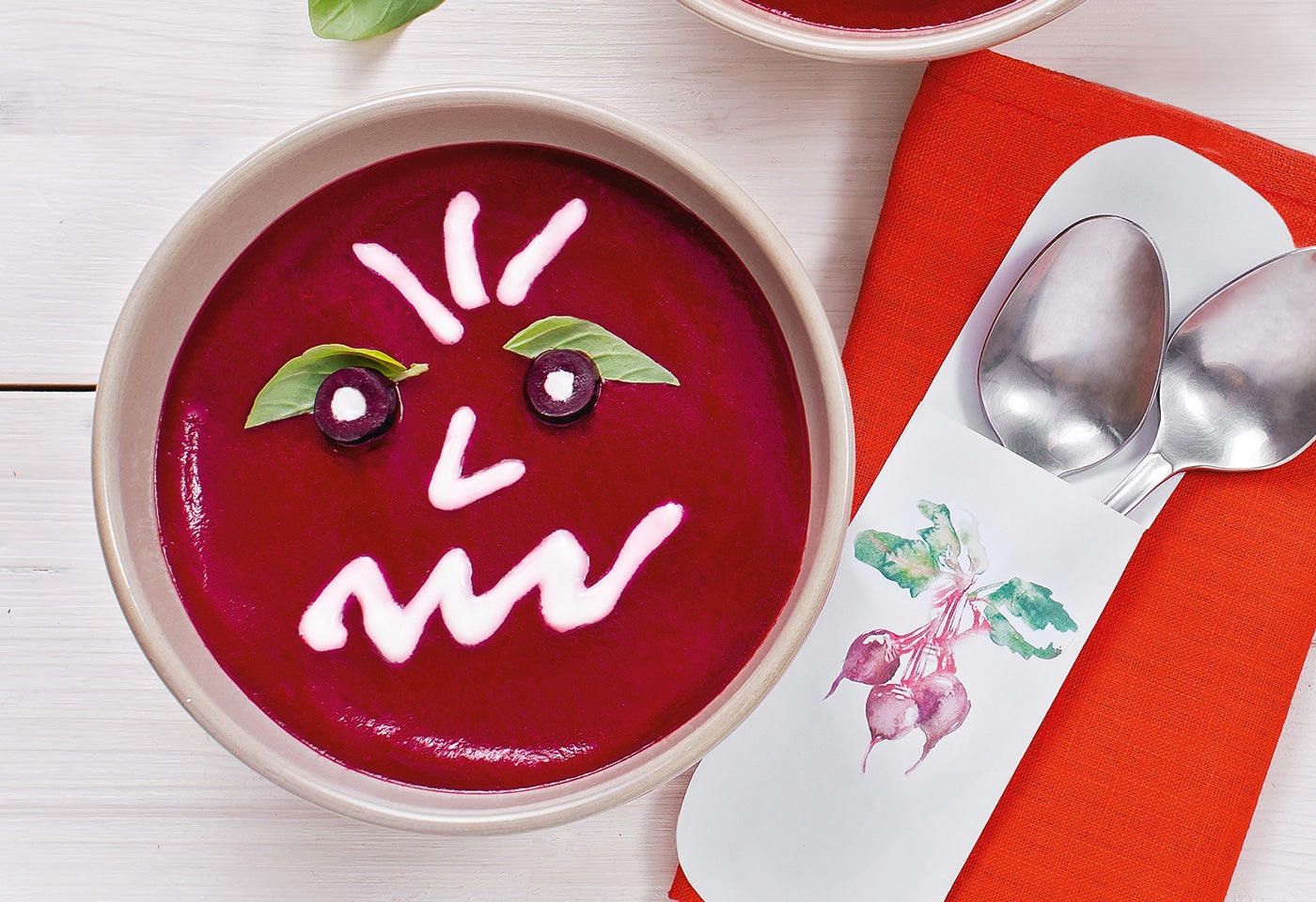 Bio-Rote-Rüben-Suppe mit Gesicht
