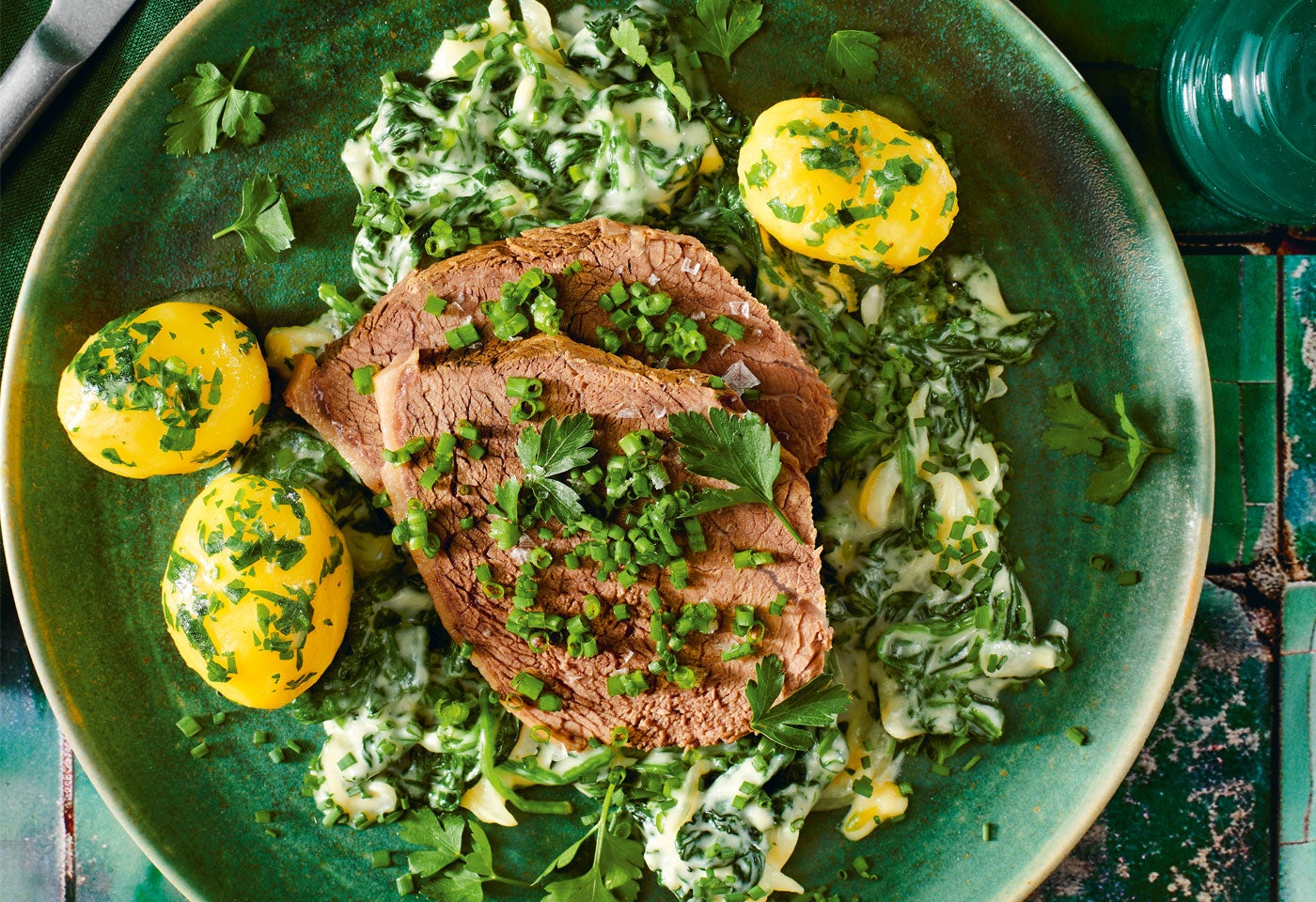 Tafelspitz mit Petersilerdäpfeln und cremigem Spinat