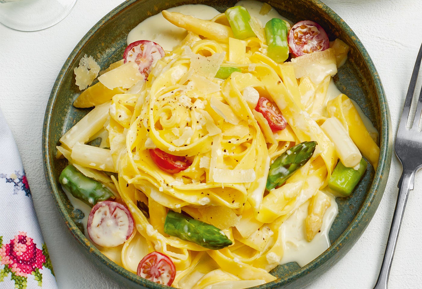 Spargel-Fettuccine mit Cherrytomaten