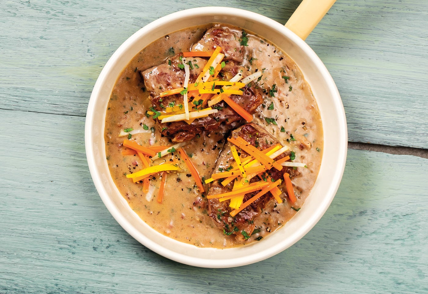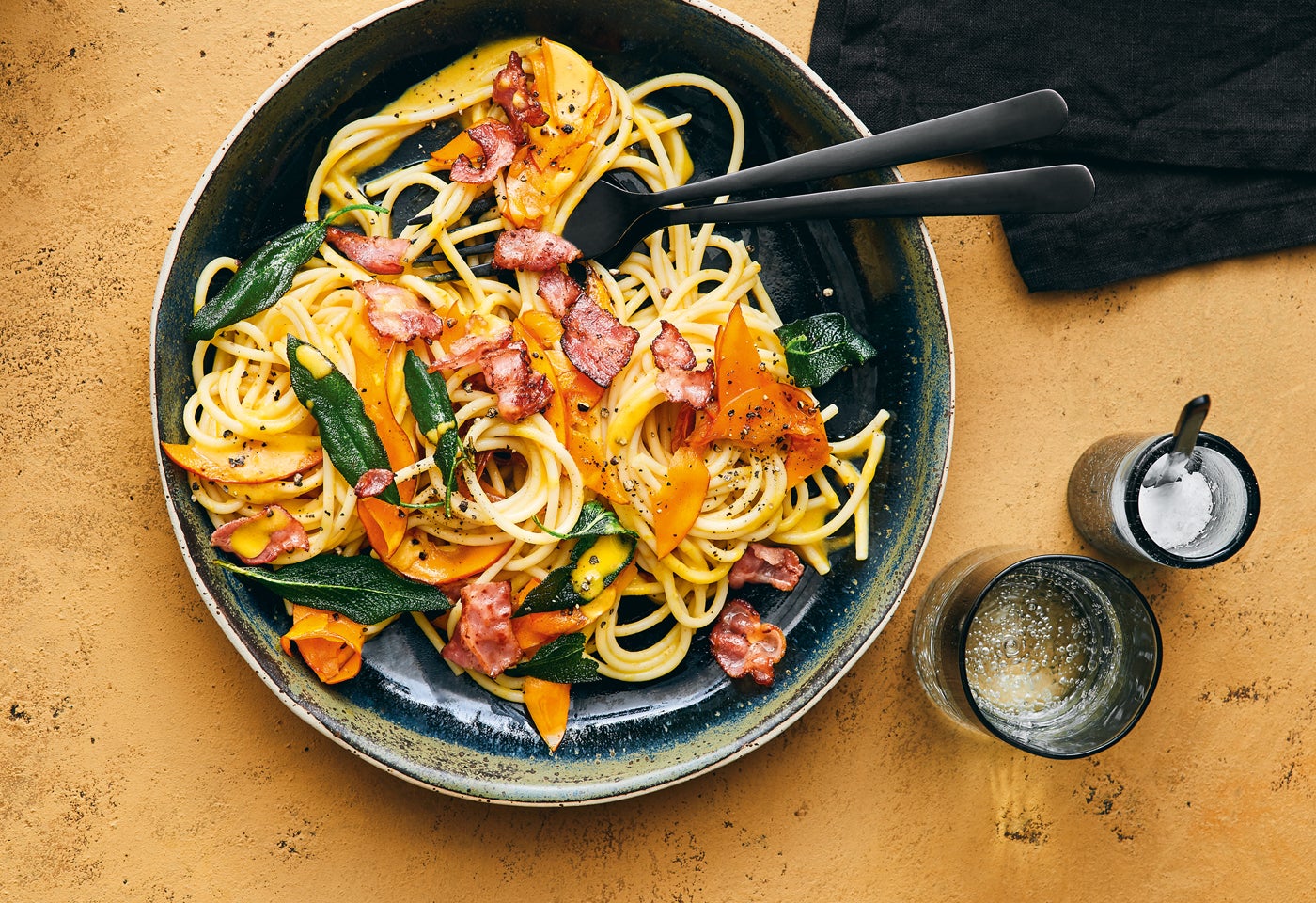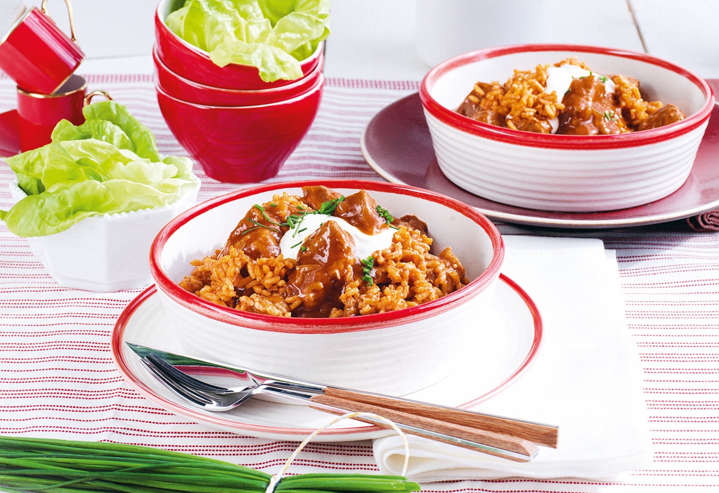 Kürbis-Erdäpfel-Gulasch mit Debreziner
