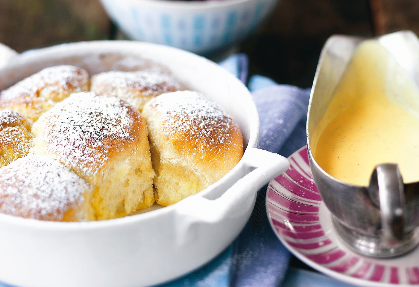 Buchteln mit Zwetschkenröster und Vanillesauce