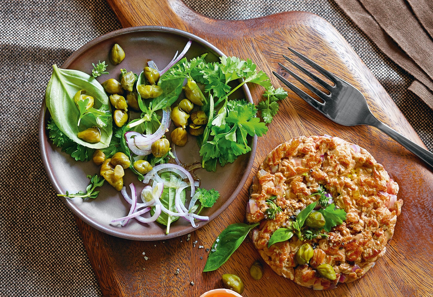 Beef Tatar brûlé mit Kräuter-Kapern-Salat