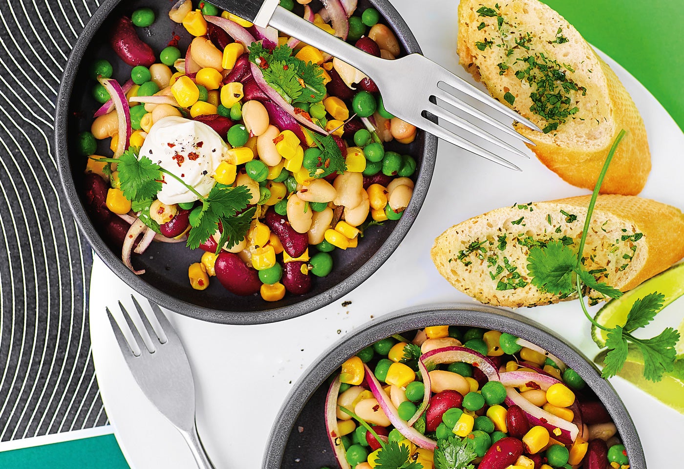 Bohnen-Mais-Salat mit Knoblauchbaguette