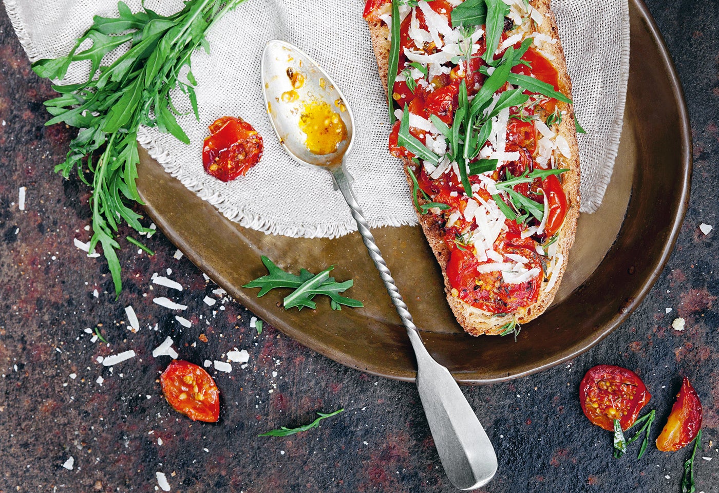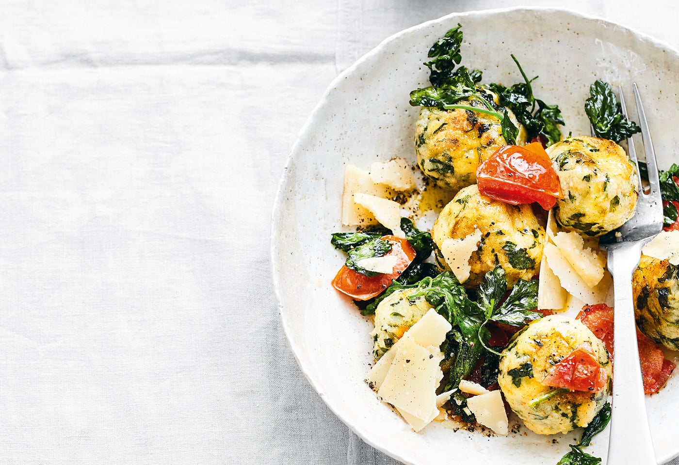 Spinat-Topfenknödel mit gebratenen Tomaten und Petersilie