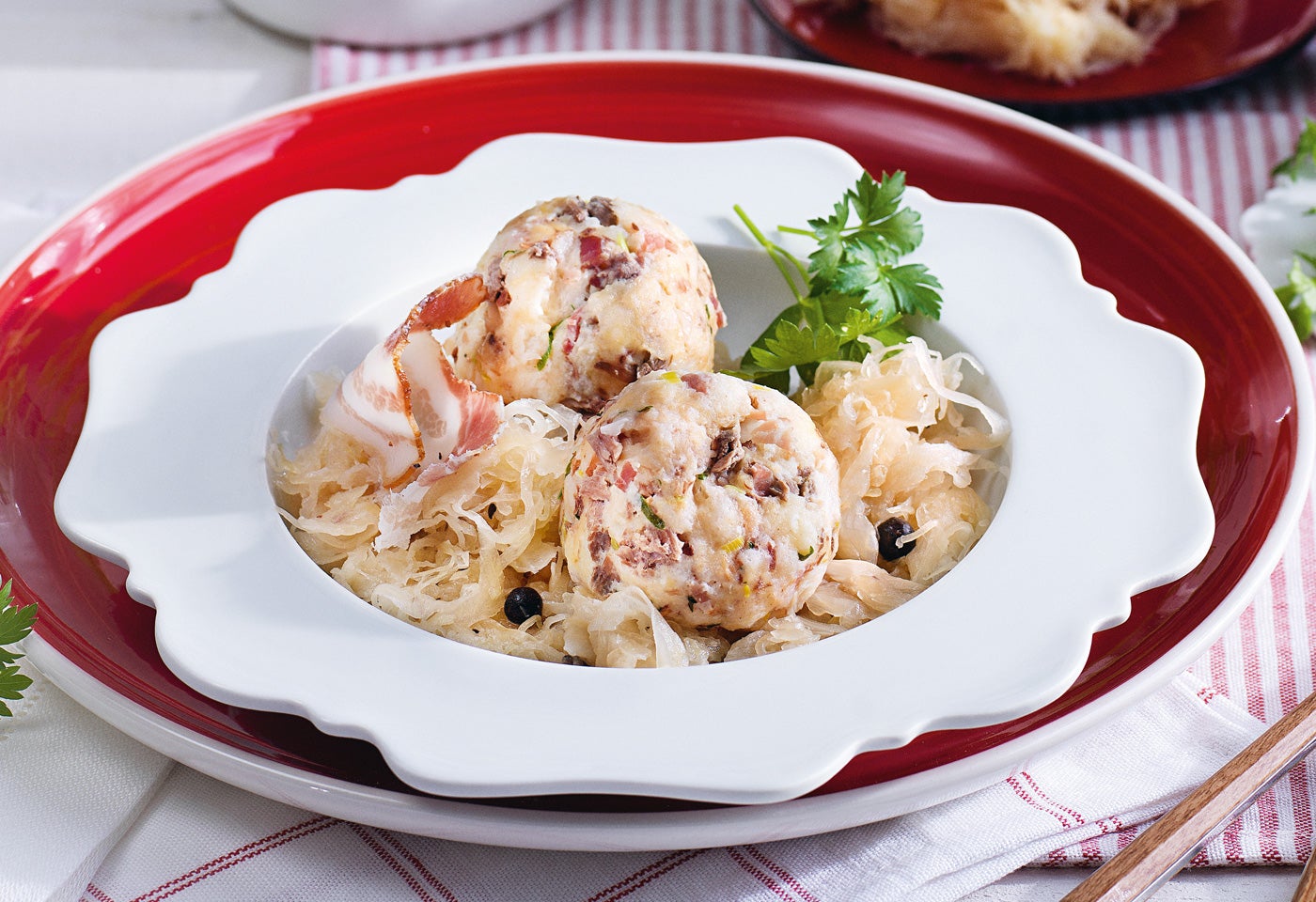 Oberösterreichische Grammelknödel mit Vogerlsalat