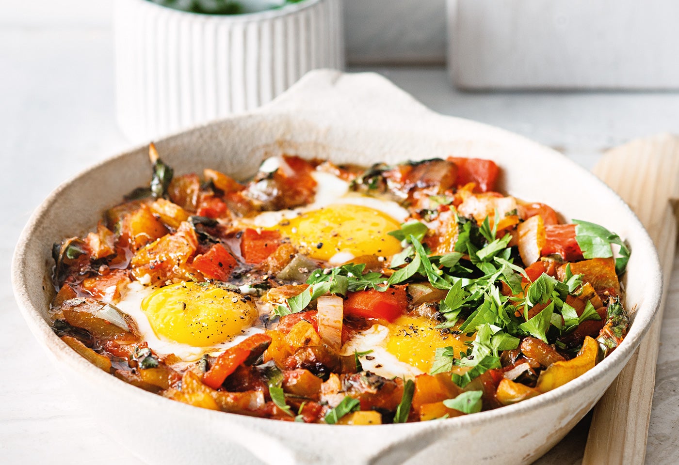 Gefüllte Portobello-Pilze mit Spinat, Speck und Ei