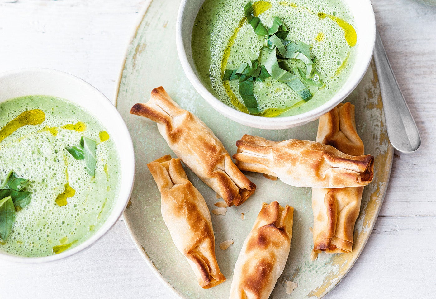 Gurken-Gazpacho mit Räucherforellen-Bonbons