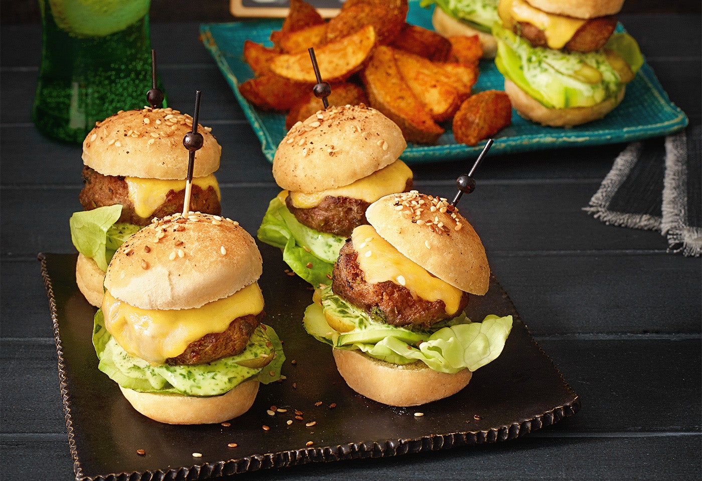 Mini-Cheeseburger mit würzigen Potato Wedges