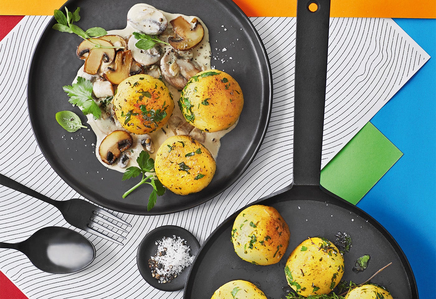 Gefüllte Erdäpfelknödel mit Pilz-Käsesauce