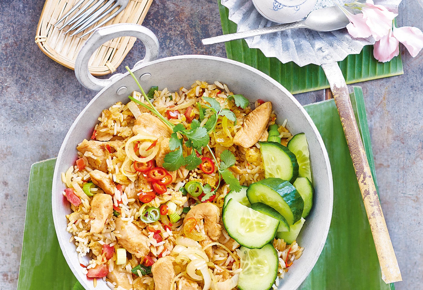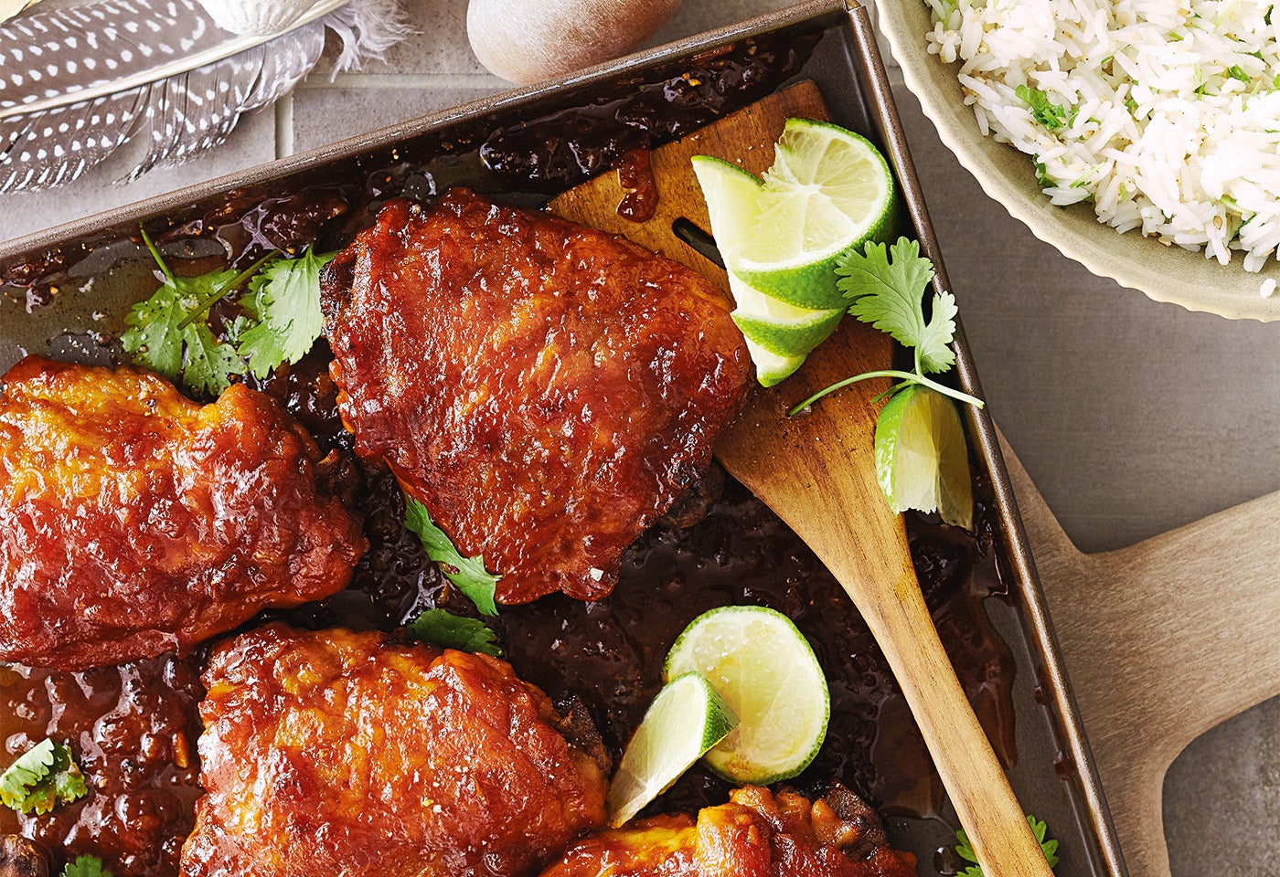 Würzig-scharfe Hühneroberkeulen mit Korianderreis
