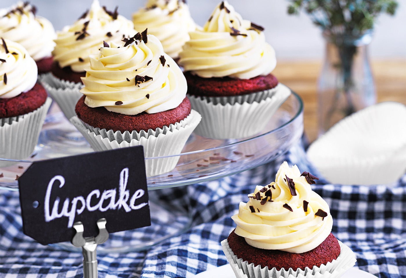Red Velvet Cupcakes mit Weiße-Schokolade-Frosting