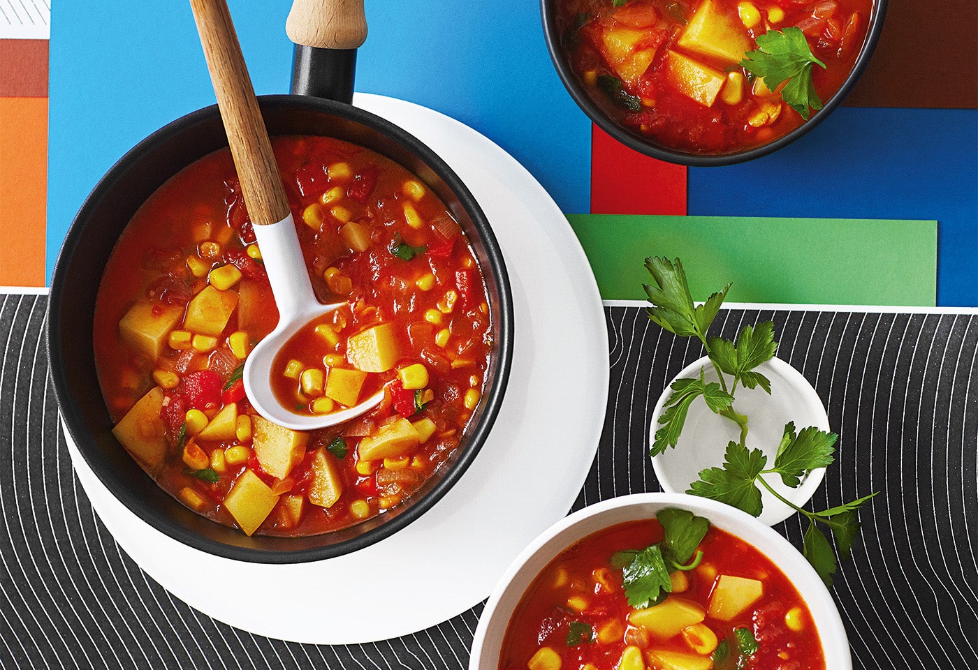 Mexikanische Suppe mit Erdäpfeln und Mais