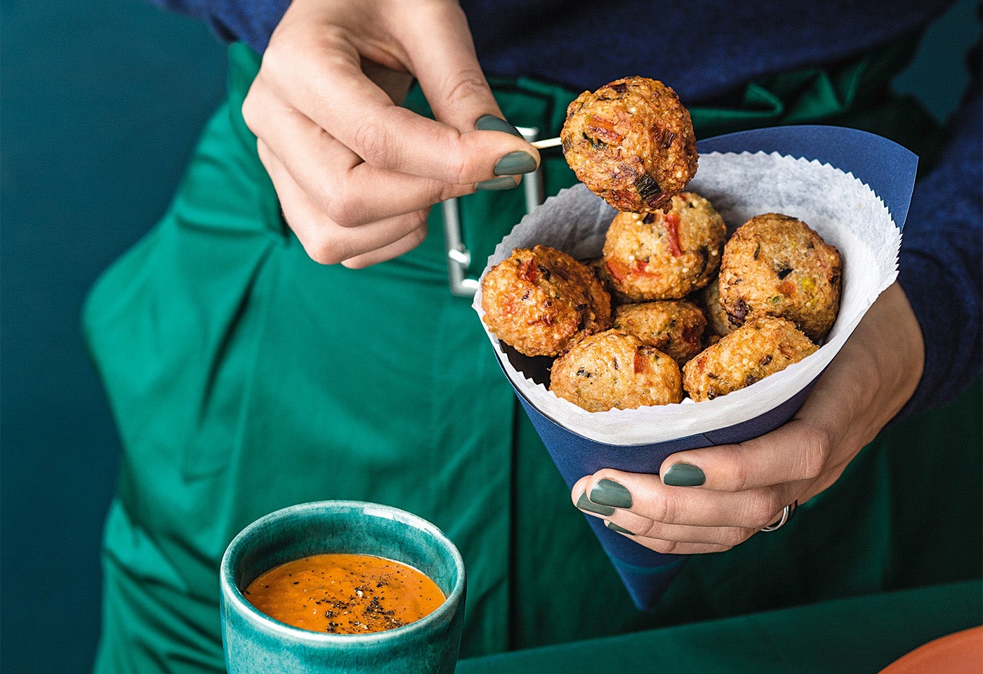 Quinoa-Bällchen mit Mojo rojo und Mojo verde