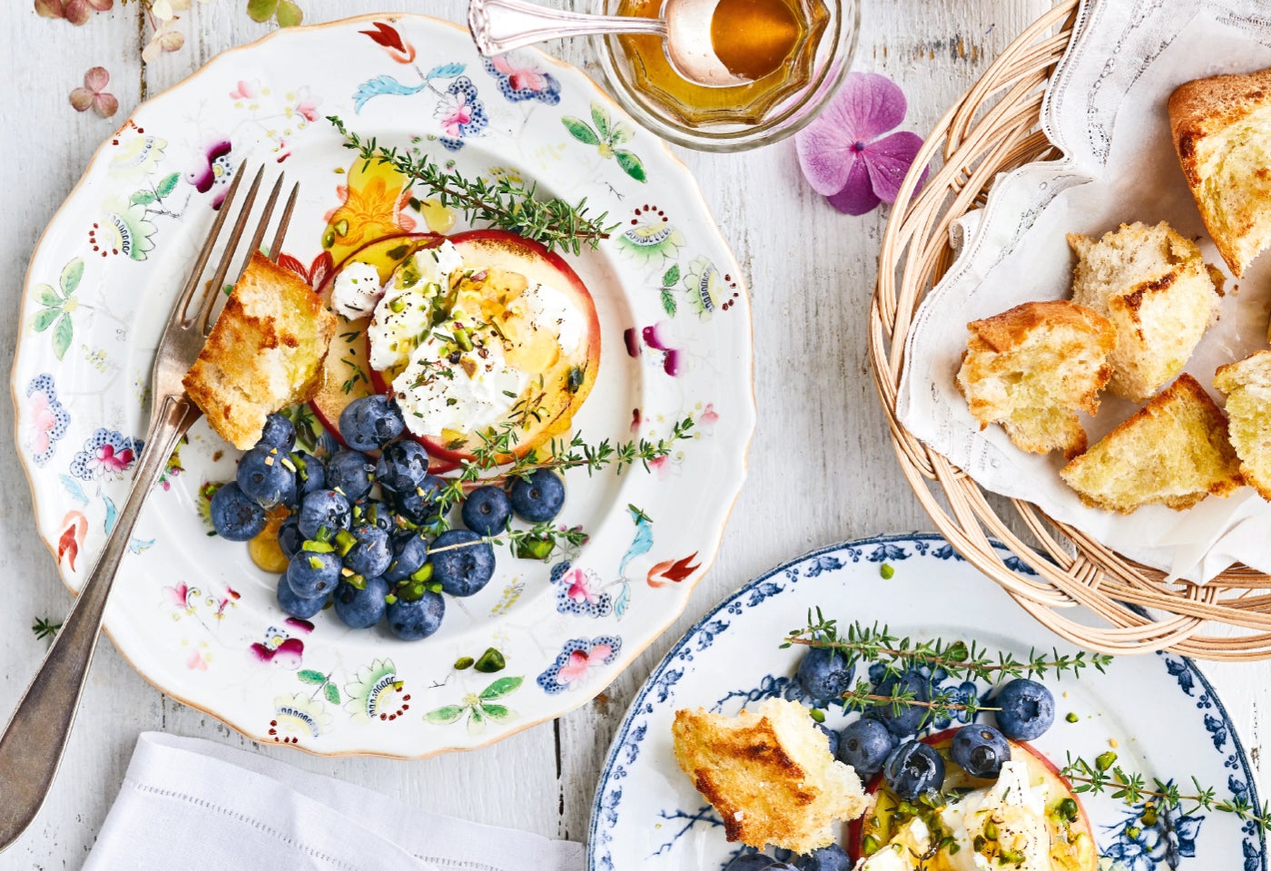 Gegrillter Ziegenkäse & Apfel mit Honig und Heidelbeeren